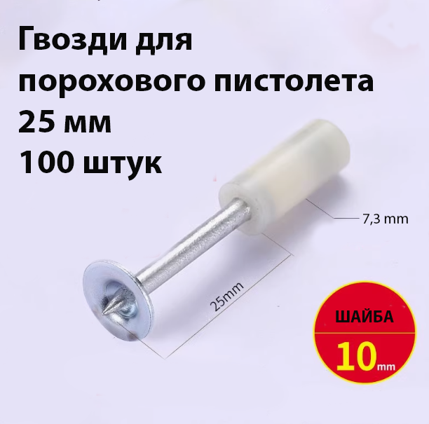 Гвозди для порохового пистолета 25 мм, пакет - 100 шт. Диаметр шайбы 15 мм интересное: