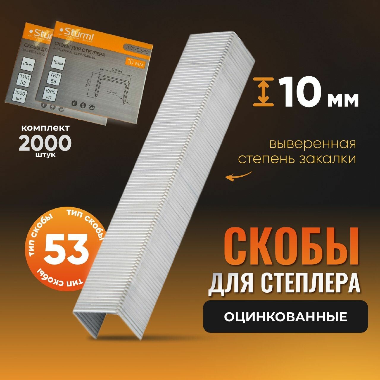 Скобы, 10 мм, для мебельного степлера, тип 53, 2000 шт Sturm! ( 2 упак. по 1000 шт) интересное: