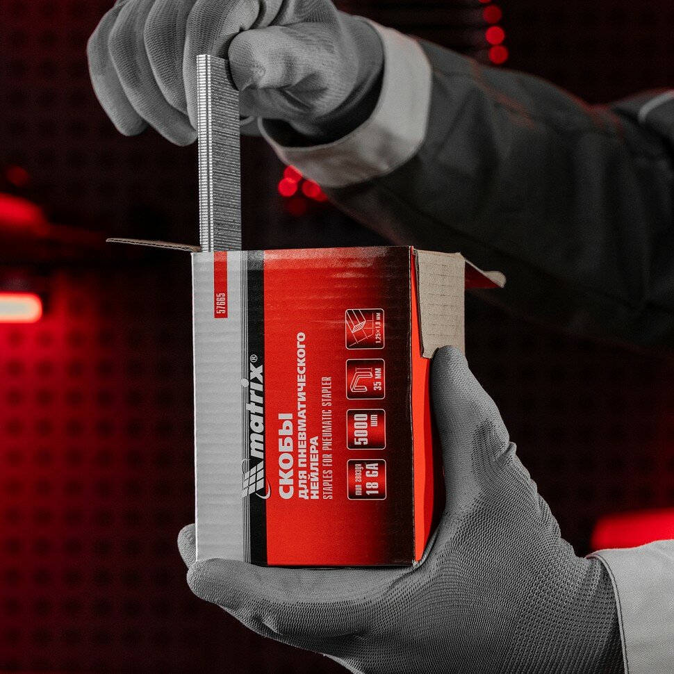 MATRIX Скобы для пневматического степлера 18GA, 1,25 х 1 мм, длина 35 мм ширина 5,7 мм, 5000 шт Matrix, ( 57665 ) интересное: