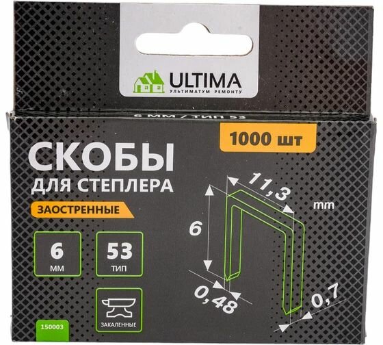 Скобы заостренные (3000 шт; 6 мм; тип 53) для степлера Ultima интересное: