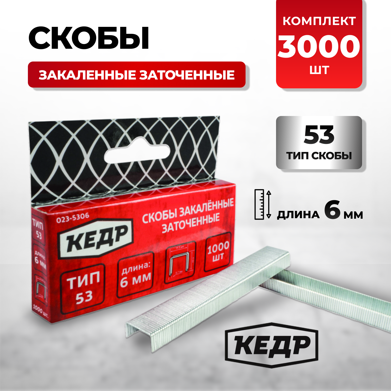Скобы 6 мм тип 53 3000 шт закаленные для мебельного степлера Кедр интересное: