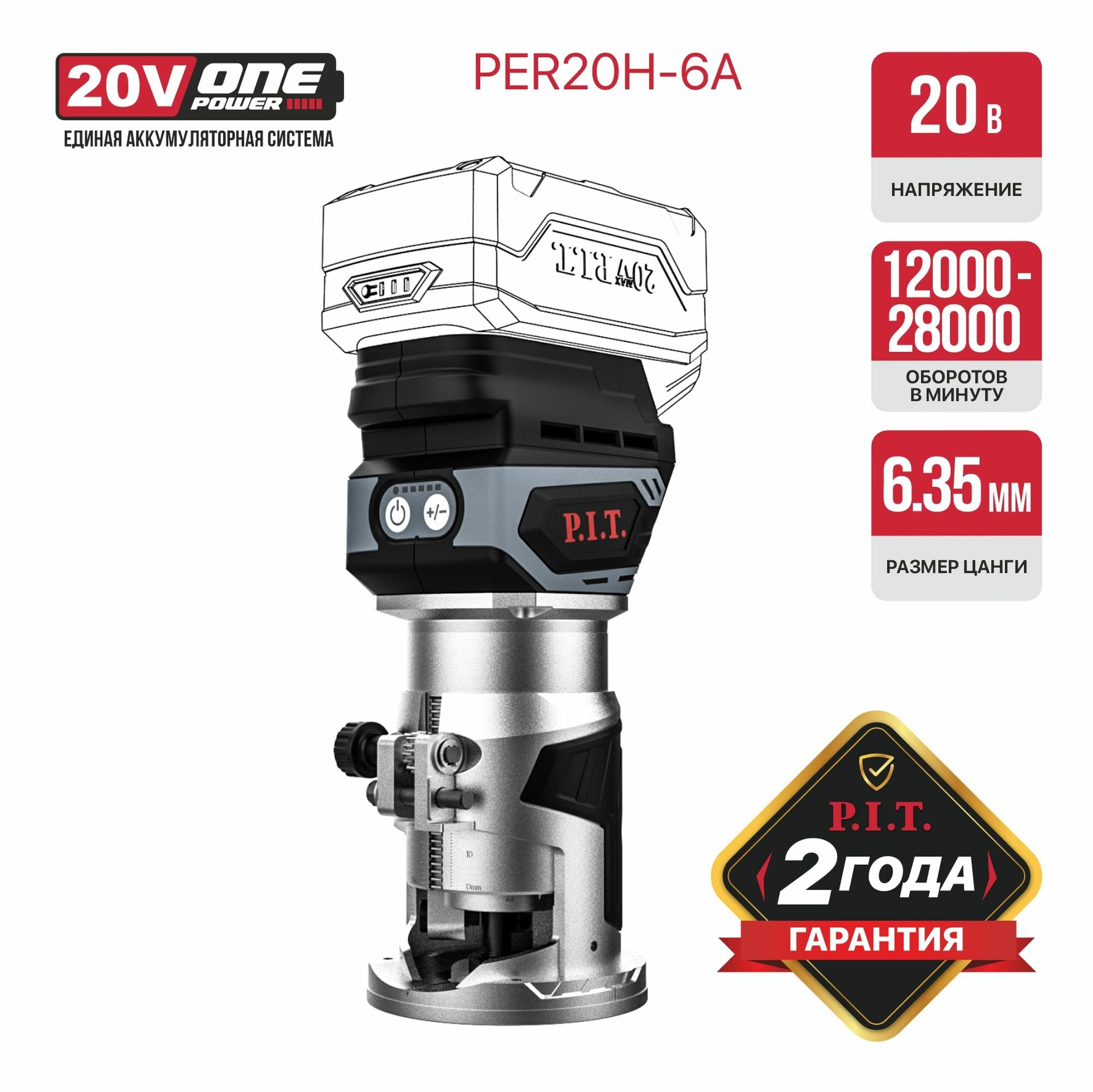 Купить Фрезер P.I.T PER20H-6A, аккумуляторный, регулировка скорости, БЕЗ АКБ И ЗУ