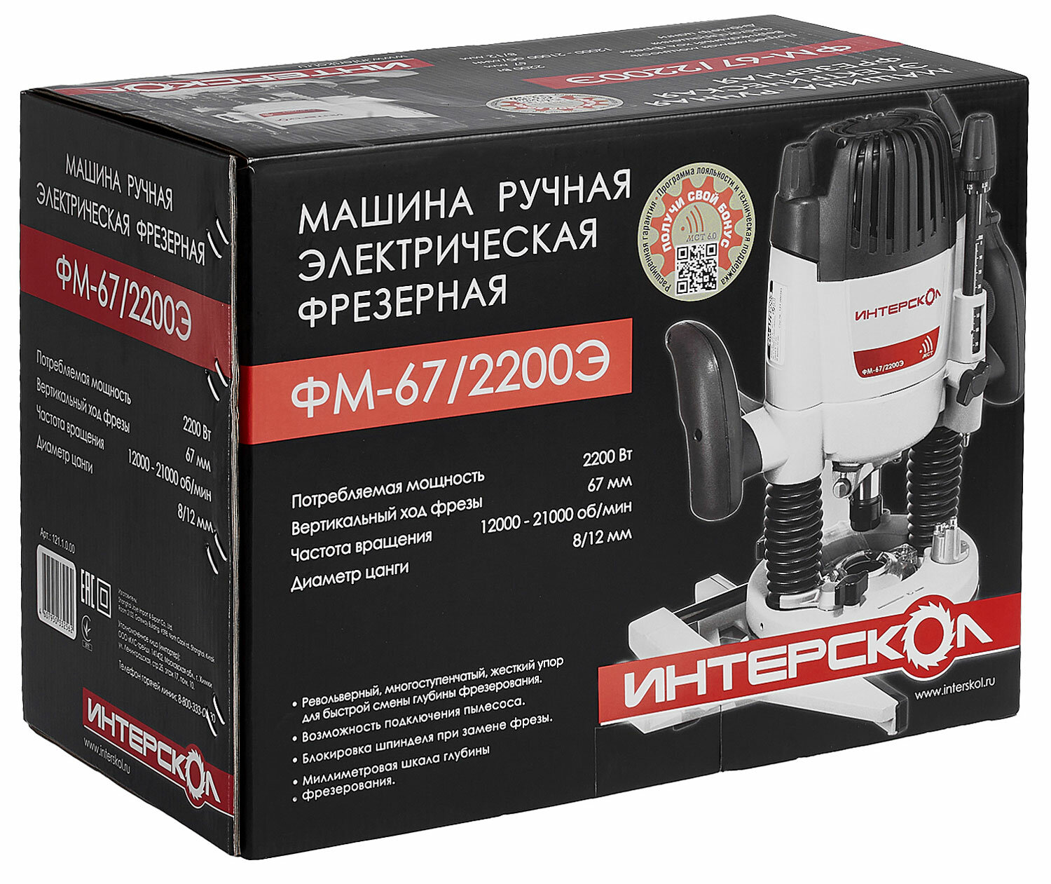Фрезер Интерскол ФМ-67/2200Э 2200Вт 21000об/мин макс. ход:67мм интересное:
