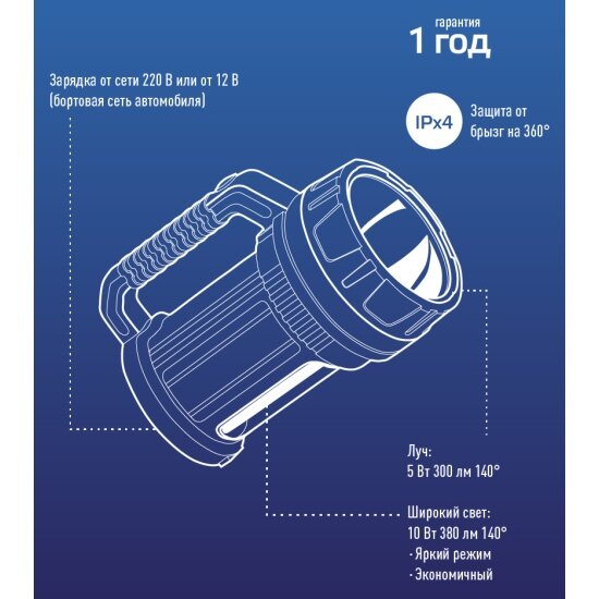 | Плюсы: | Мощный недорогой фонарь. Для дома в самый раз.