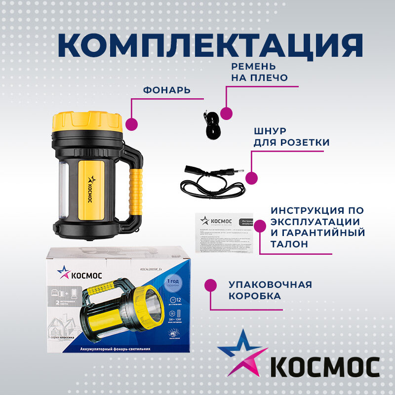 СохранитьФонарь со светильником аккумуляторный Космос Ac2005W, черный/желтый интересное:
