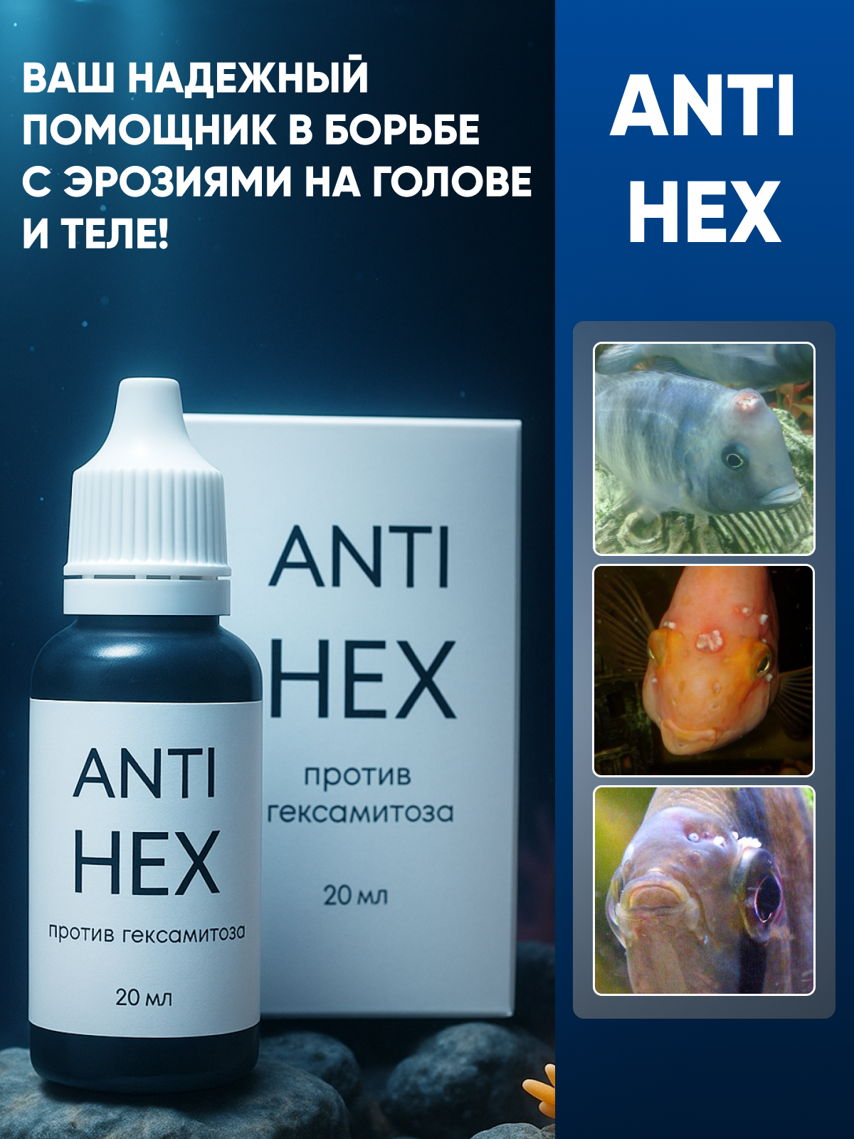 Аквариумный кондиционер ANTI HEX для устранения гексамитоза, 20 мл (для аквариума до 800 л.) интересное: