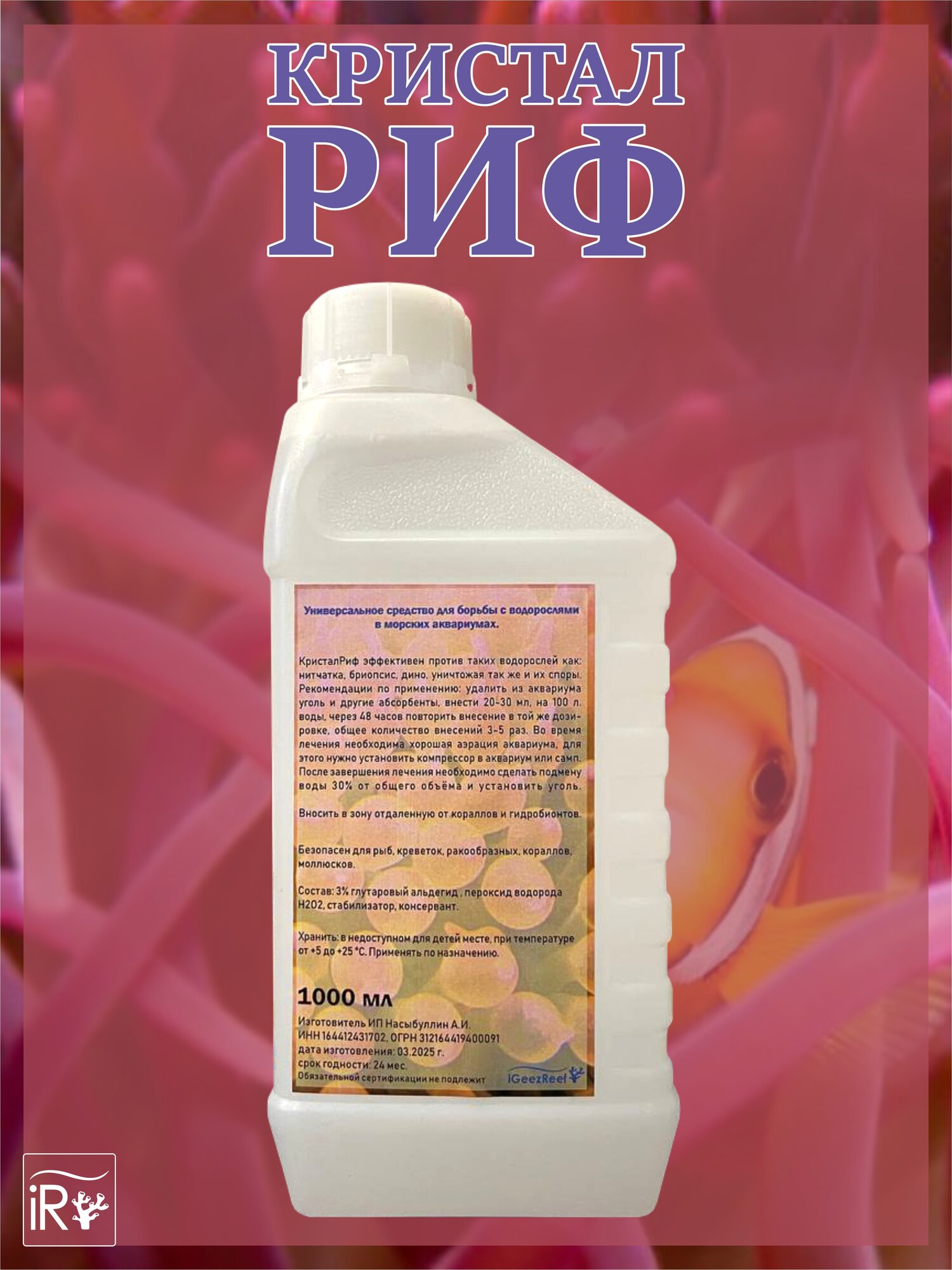 КристалРиф, iGeezReef 1л, средство против водорослей в рифовом аквариуме. интересное: