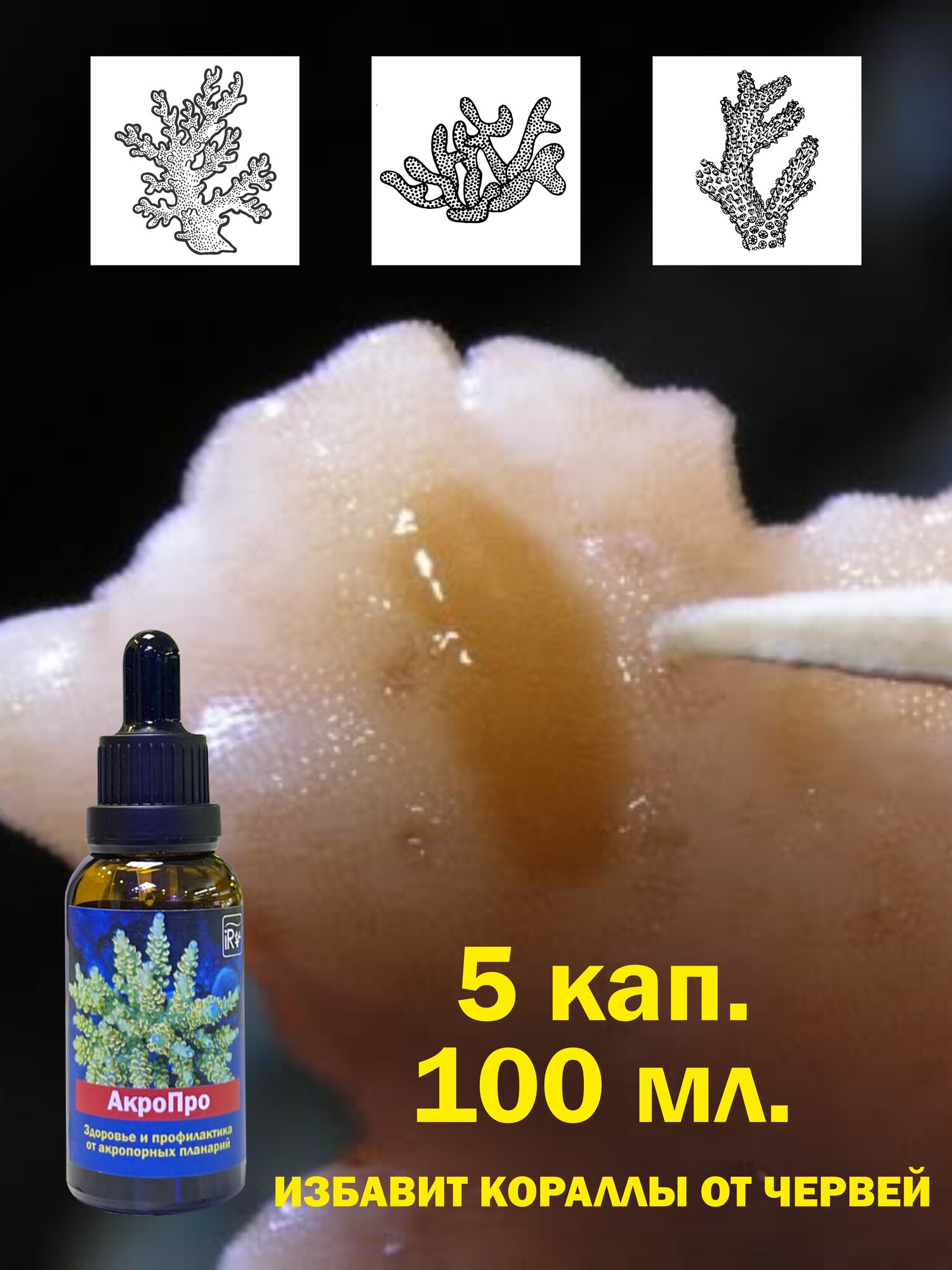 АкроПро "iGeezReef" 30 мл, средство для лечения акропор и монтипор от AEFW червей, планарий в морском аквариуме. интересное: