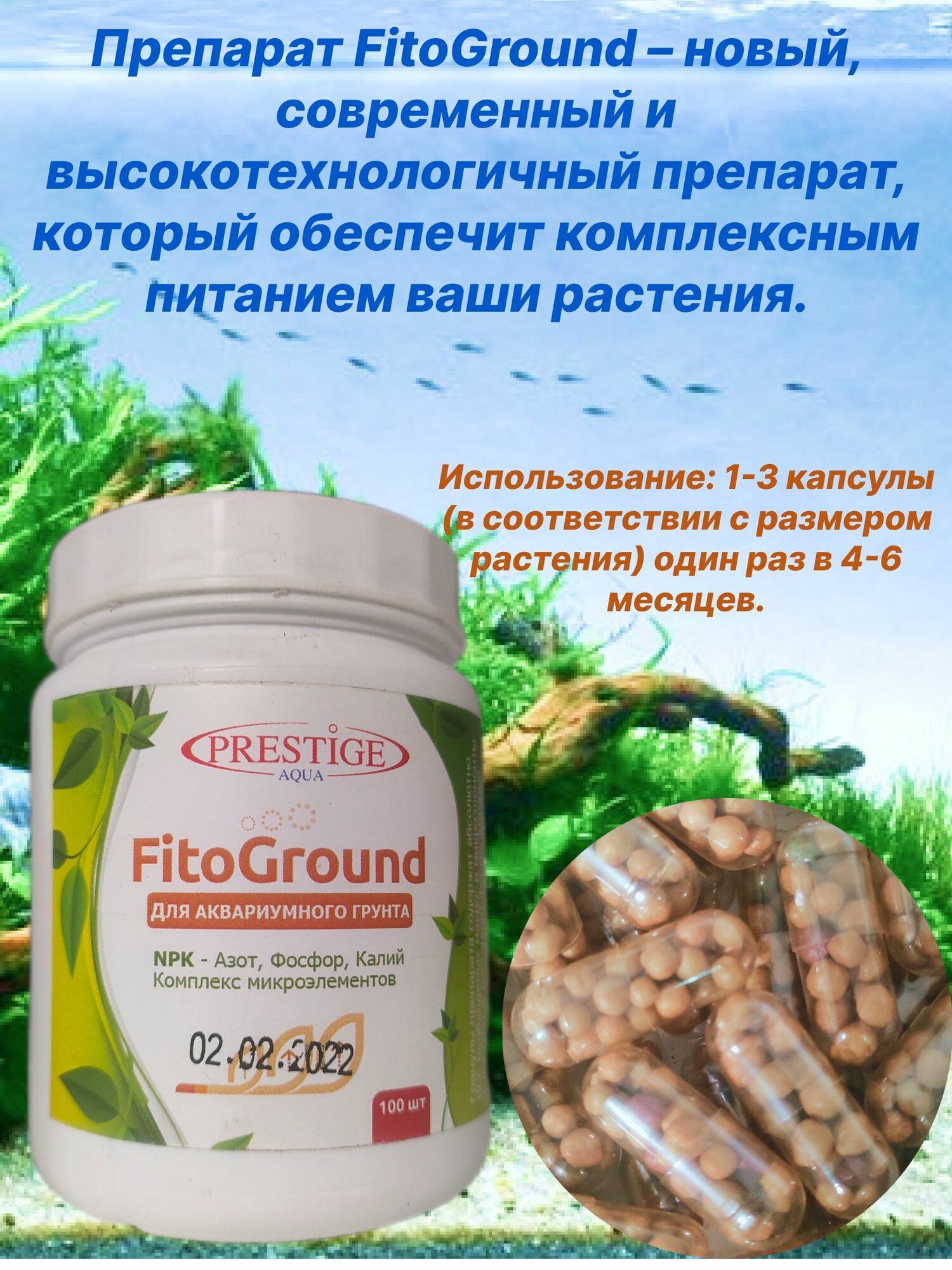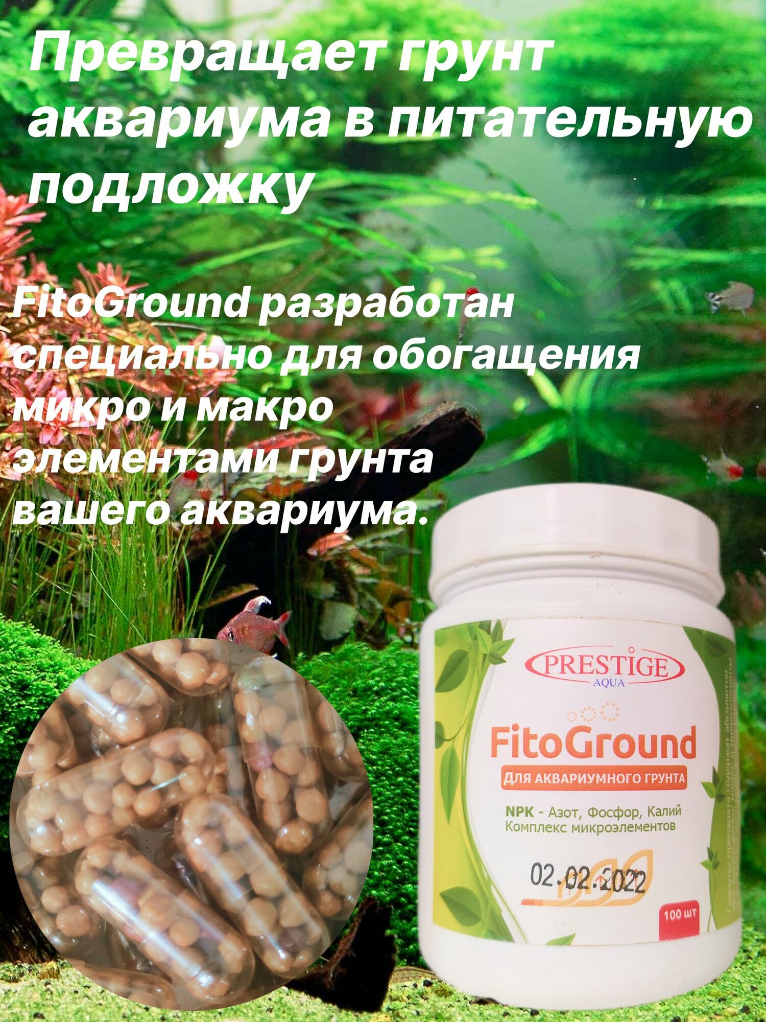 Удобрение Prestige Aqua Fito Ground для аквариумных растений, грунтовая подкормка, 100 капсул. 125гр. интересное:
