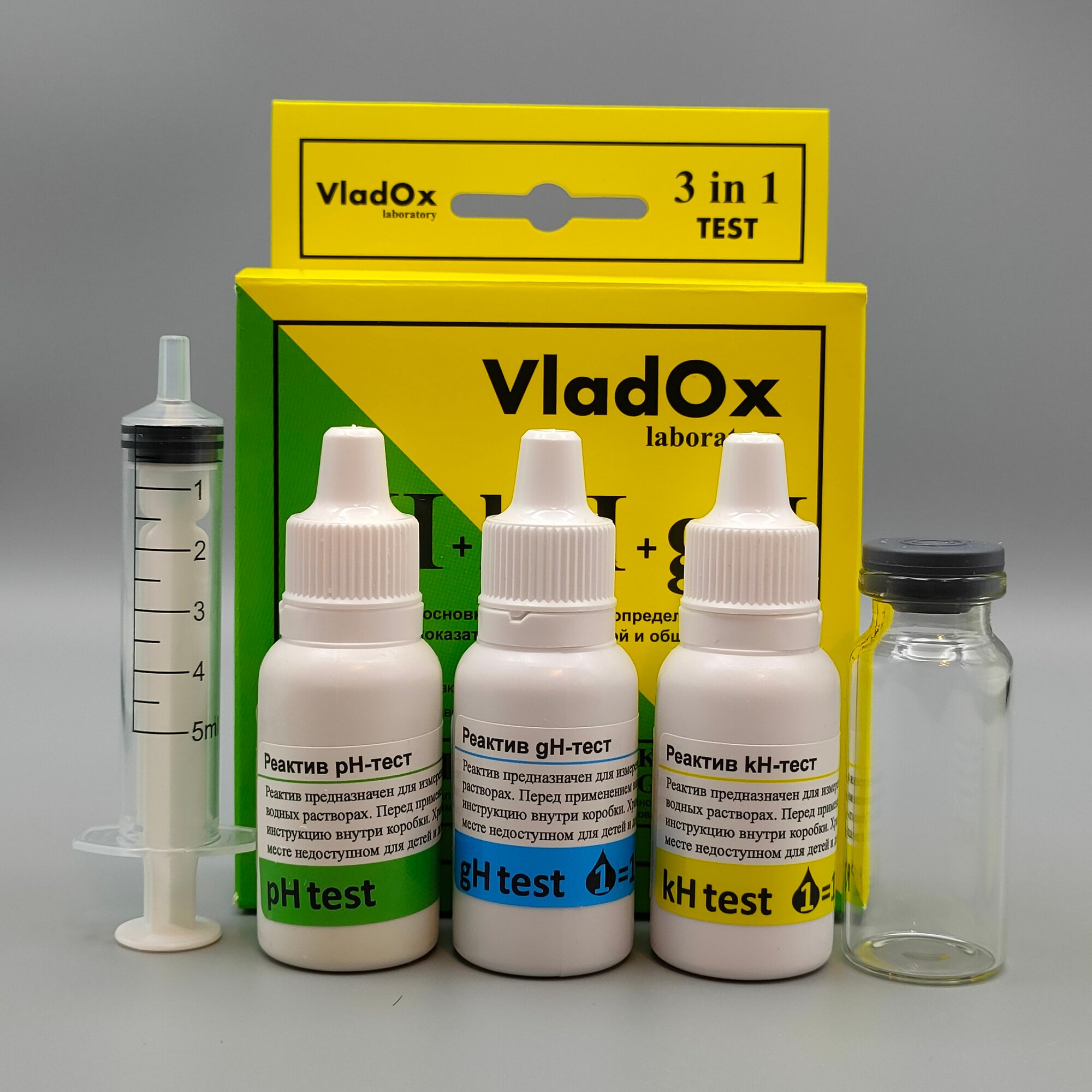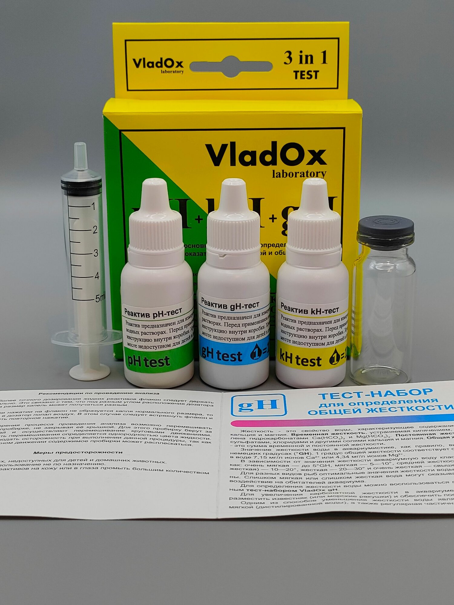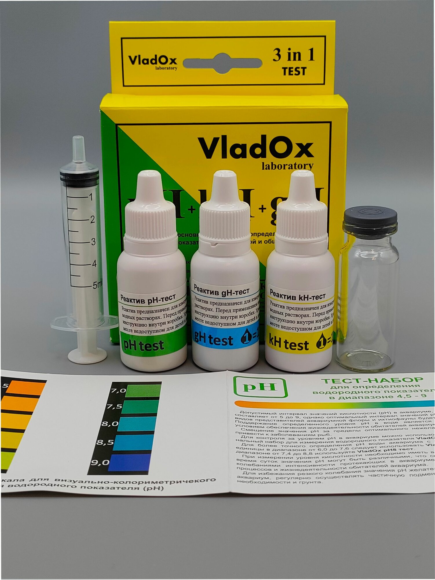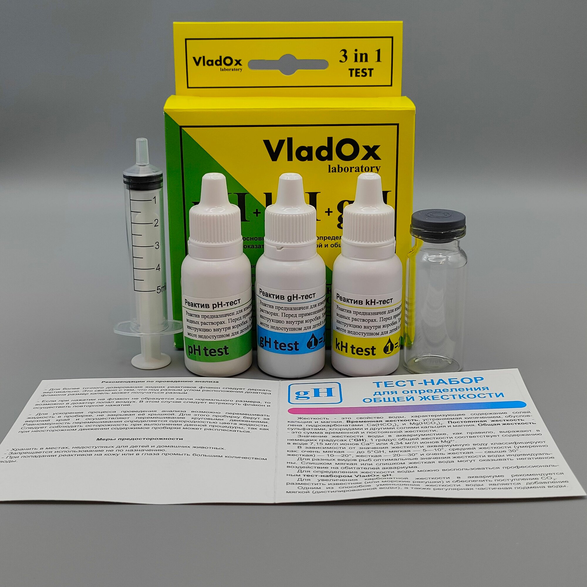 Набор тестов для измерений основных показателей воды из трёх тестов VladOx pH+gh+kh в пресном аквариуме интересное:
