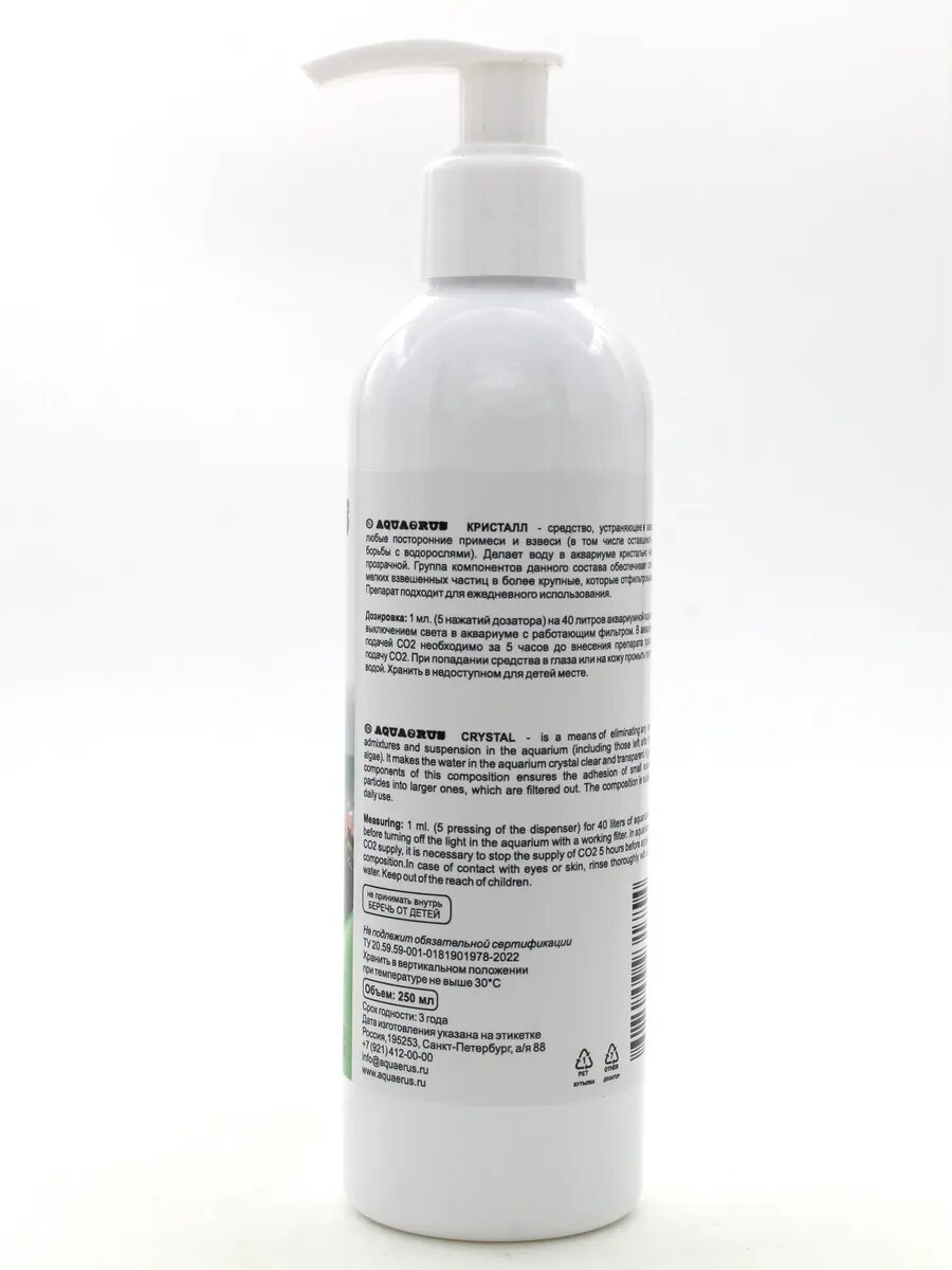 Удобрения для аквариумных растений AQUAERUS Кристалл, против мути в аквариуме, 250 мл интересное: