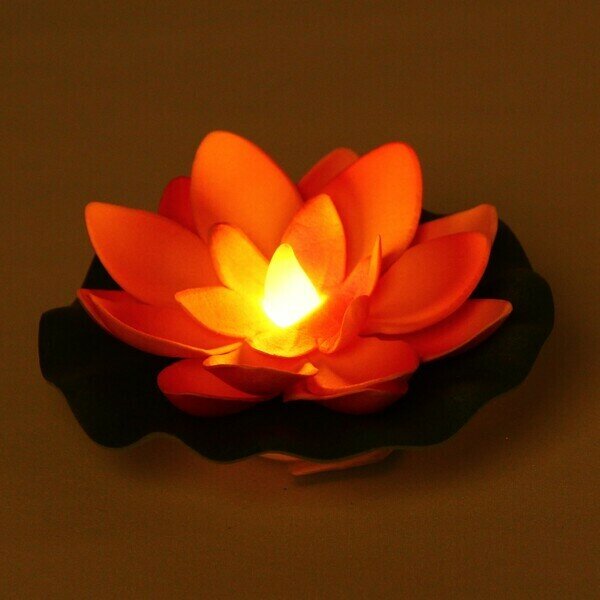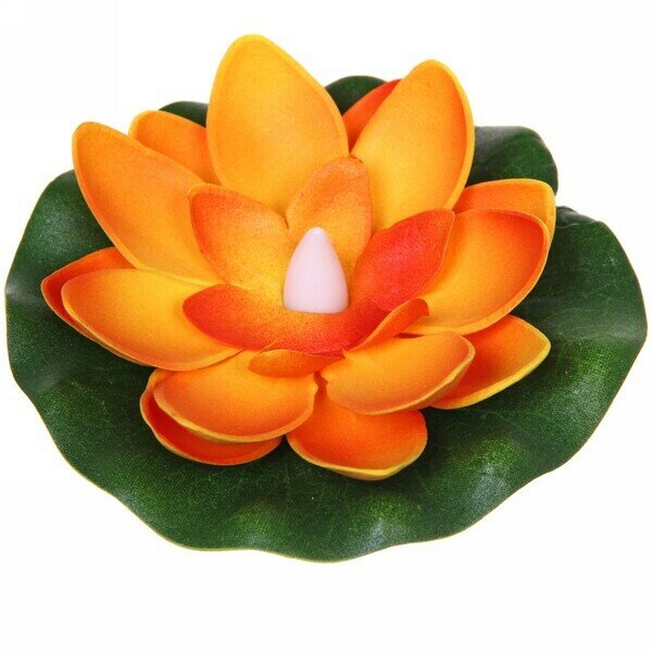 Купить Растение водоплавающее «Кувшинка» d-10см с подсветкой от контакта с водой, оранжевая