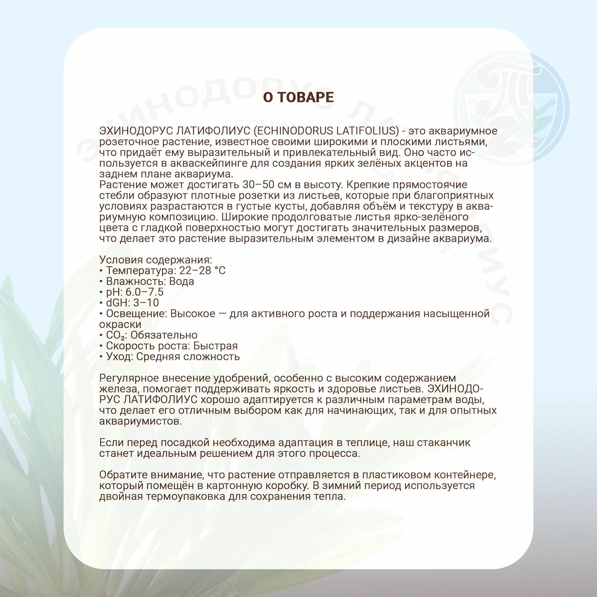 Эхинодорус латифолиус (ECHINODORUS LATIFOLIUS) меристема живые растения in-vitro для аквариума интересное: