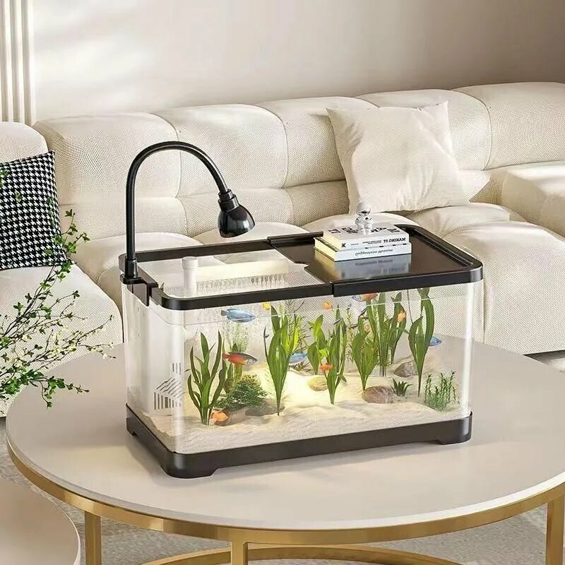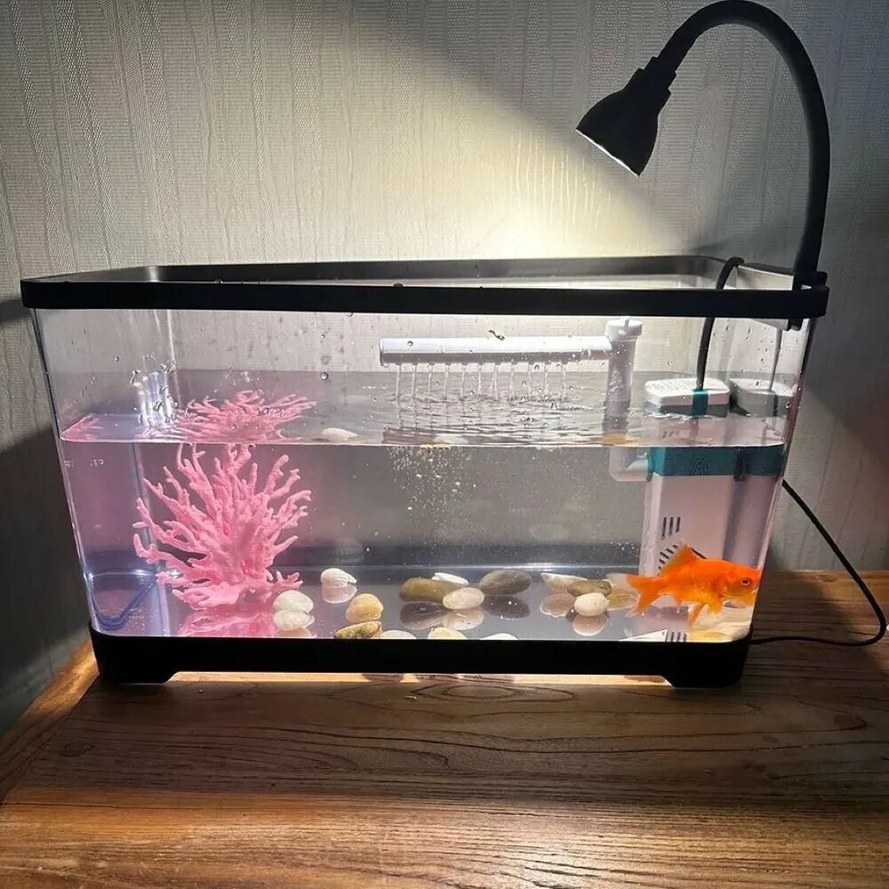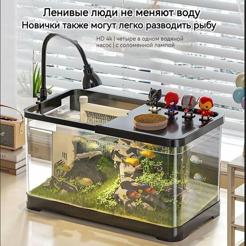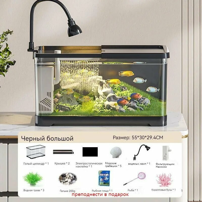 Аквариум для рыбок с подсветкой, фильтром и системой самоочистки, 360° обзор, экологичный дизайн интересное: