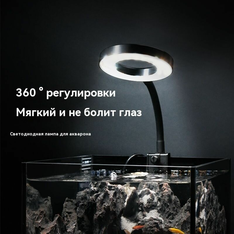 Круглый мини-аквариум для стола! USB подсветка + фильтр. Панорамный обзор 360°