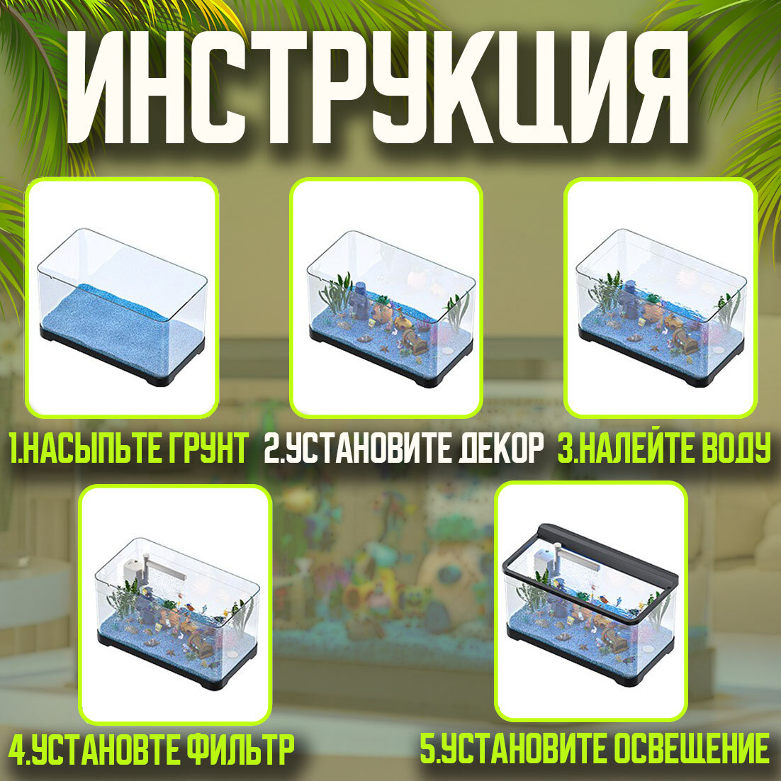 Аквариум с подсветкой для рыб, белый,30.5х18.8х19.5см интересное: