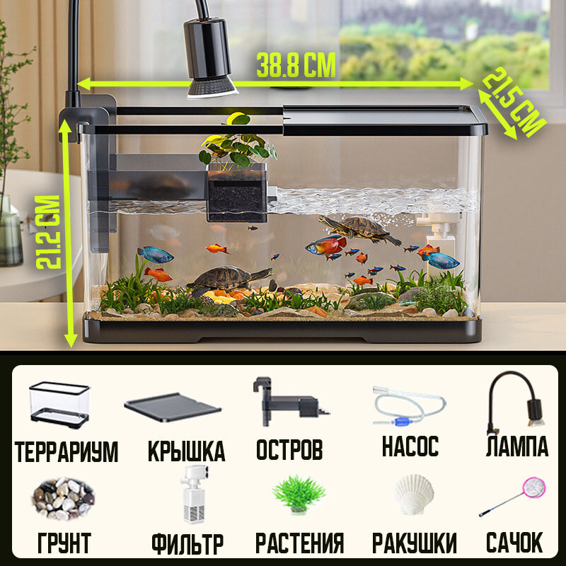 СохранитьАквариум для черепах и рыб с встроенным фильтром, освещением и островом, черный,38.8X21.5X21.2CM интересное: