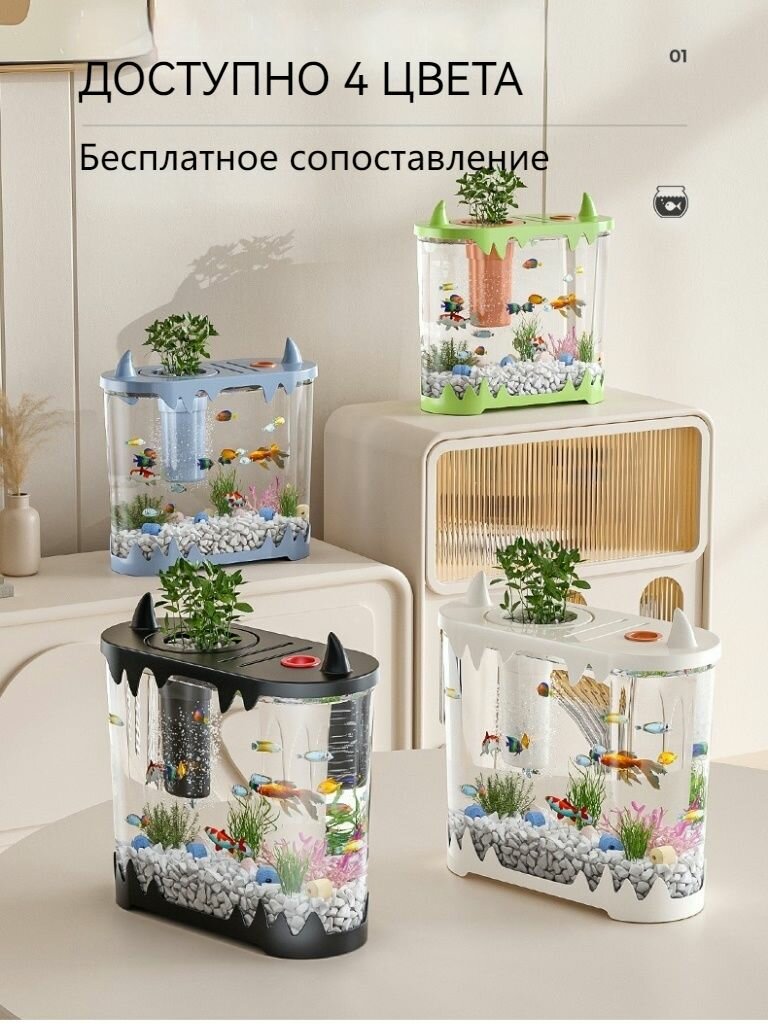 Акваферма Аквариум для рыбок самоочищающийся 2 литра