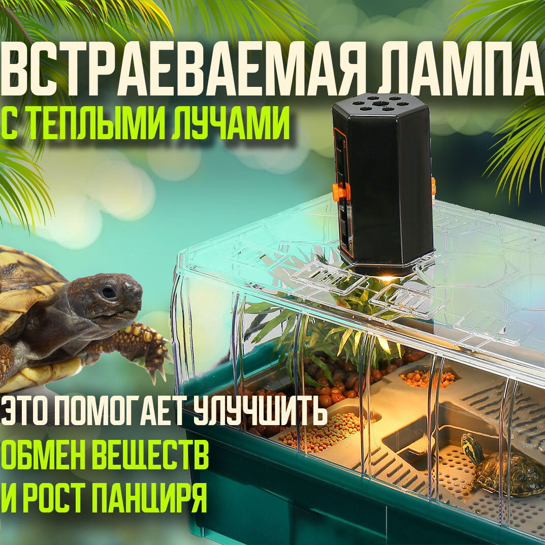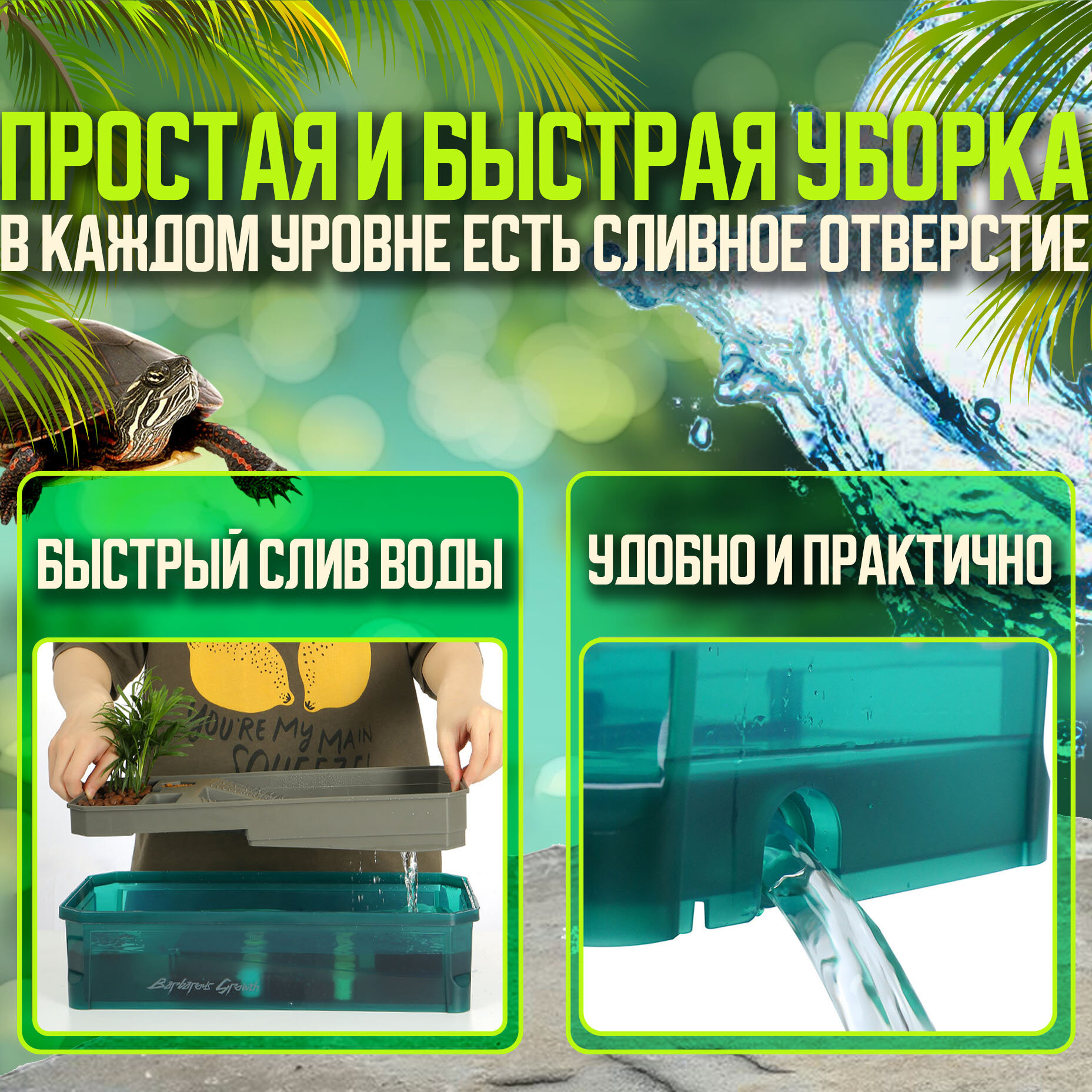 Аквариум для черепах с фильтром, фонтаном и подсветкой, зеленый,65х32х 24см