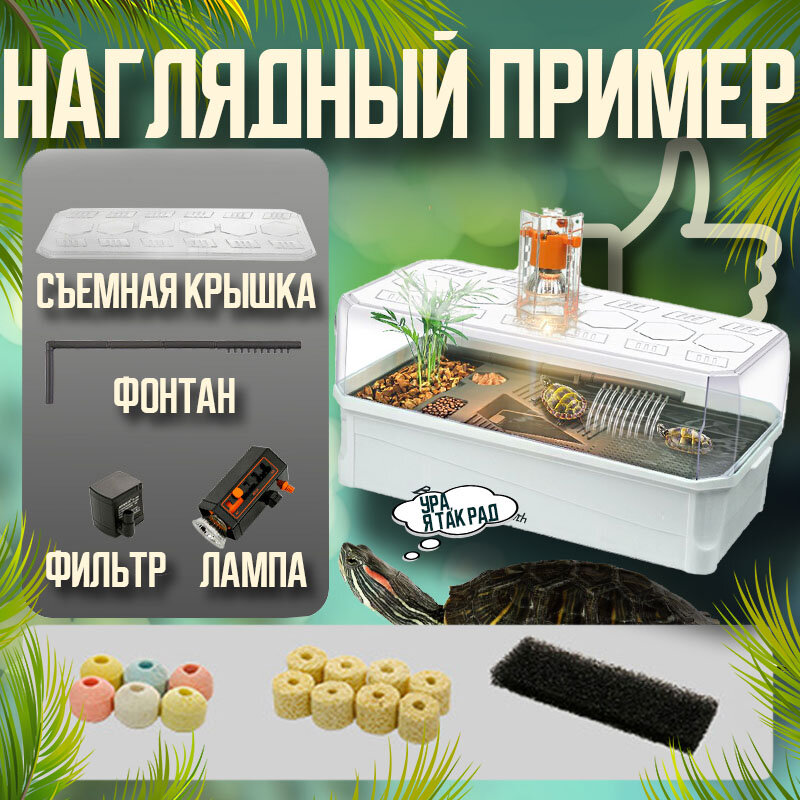 Аквариум для черепах с фильтром, фонтаном и подсветкой, белый,35х18х 18см интересное: