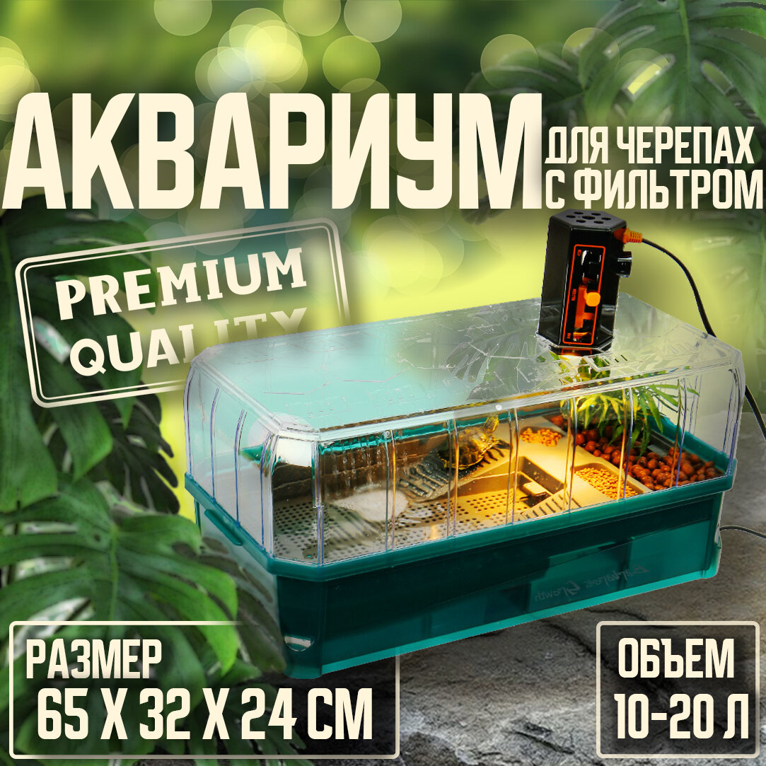 Купить Аквариум для черепах с фильтром, фонтаном и подсветкой, зеленый,65х32х 24см