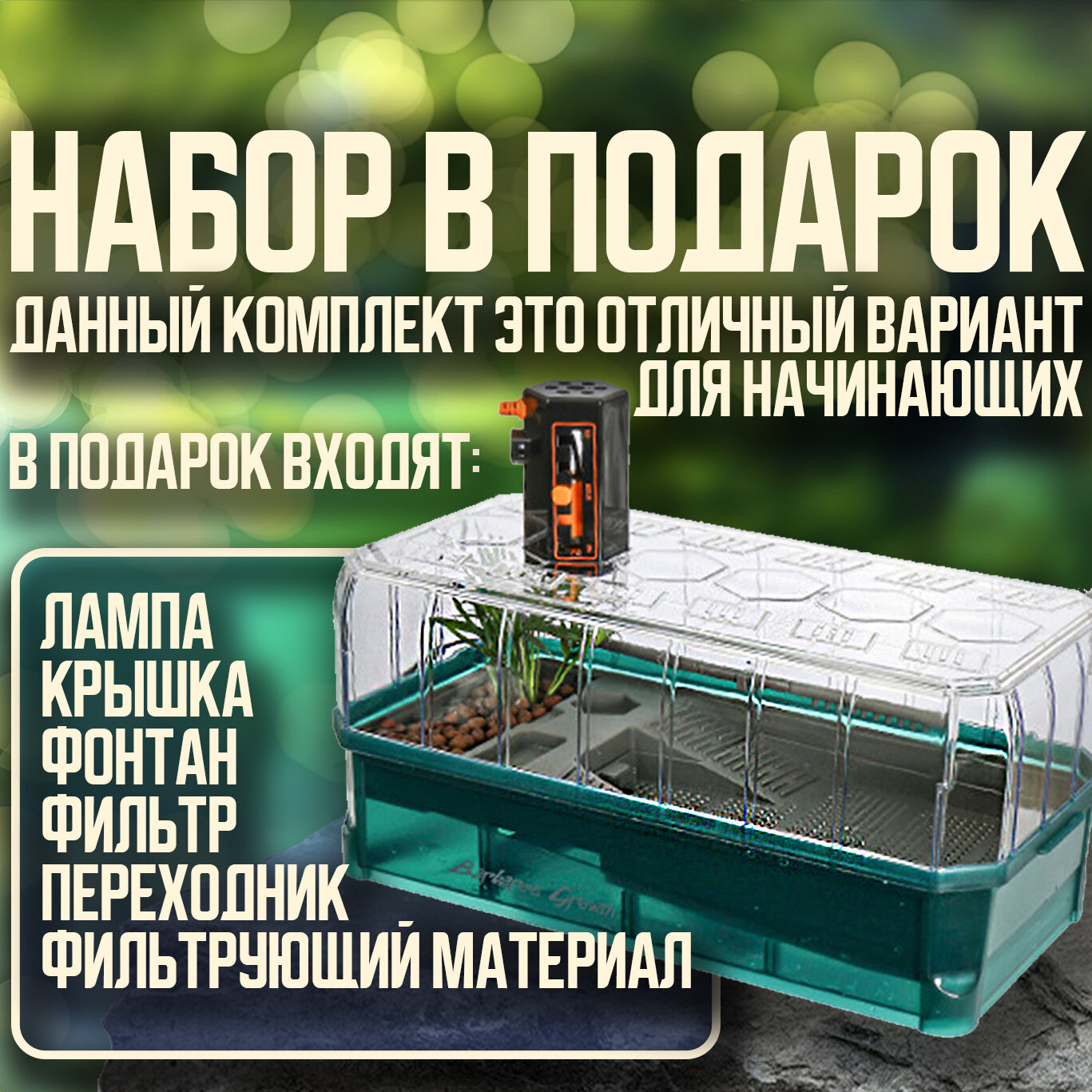 Аквариум для черепах с фильтром, фонтаном и подсветкой, зеленый,35х18х 18см