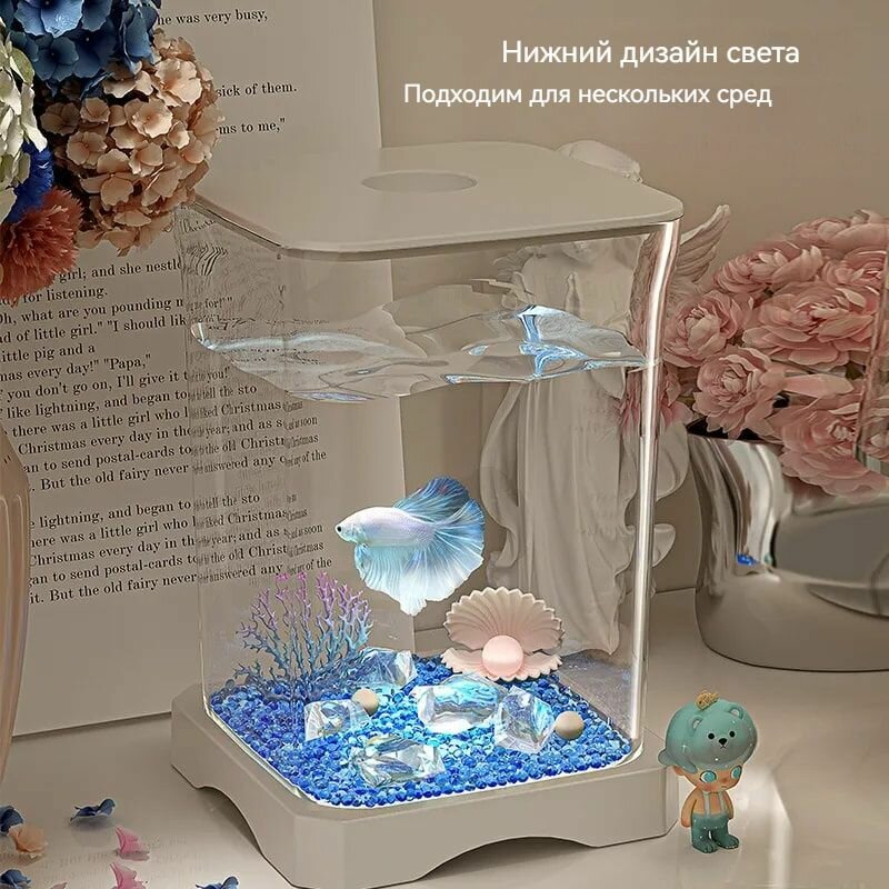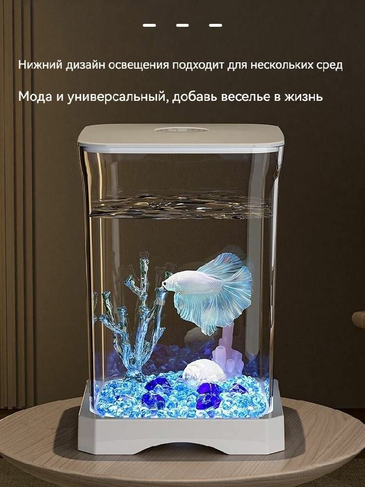 Купить Белый мини-аквариум из прозрачного акрила для 1-2 рыбок! LED подсветка + фильтр
