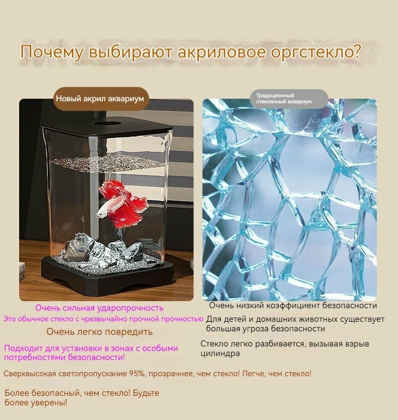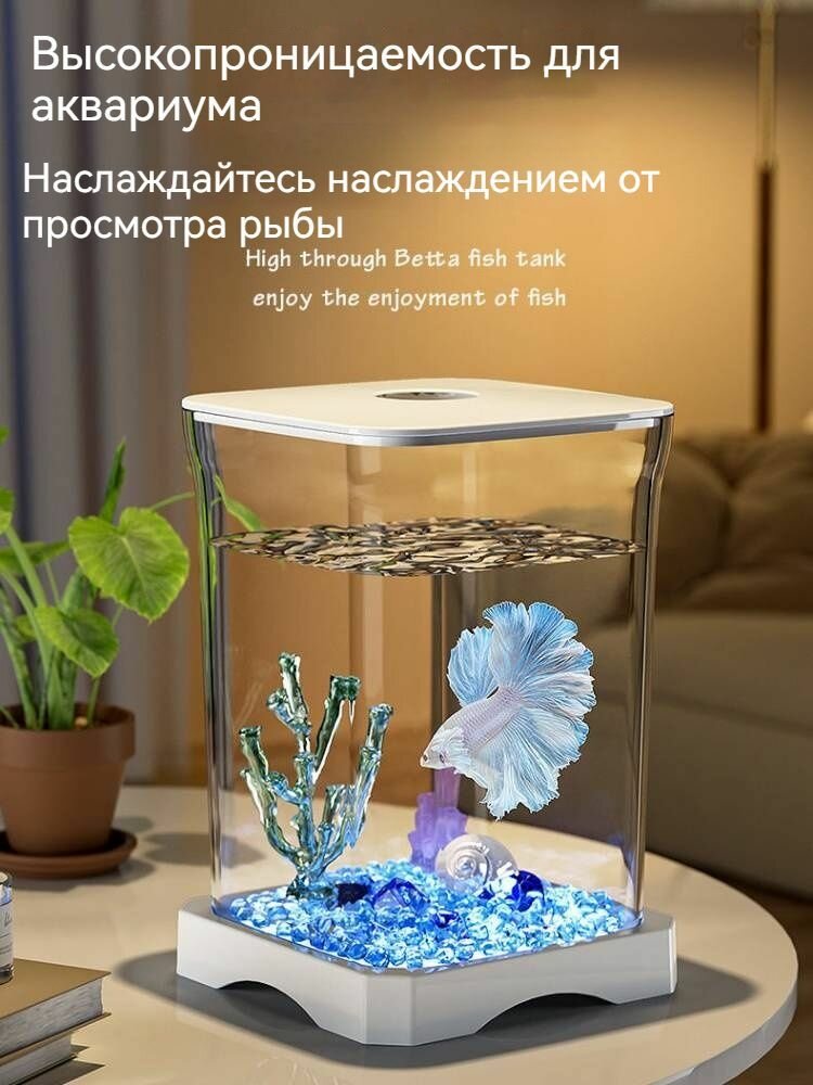 Белый мини-аквариум из прозрачного акрила для 1-2 рыбок! LED подсветка + фильтр интересное: