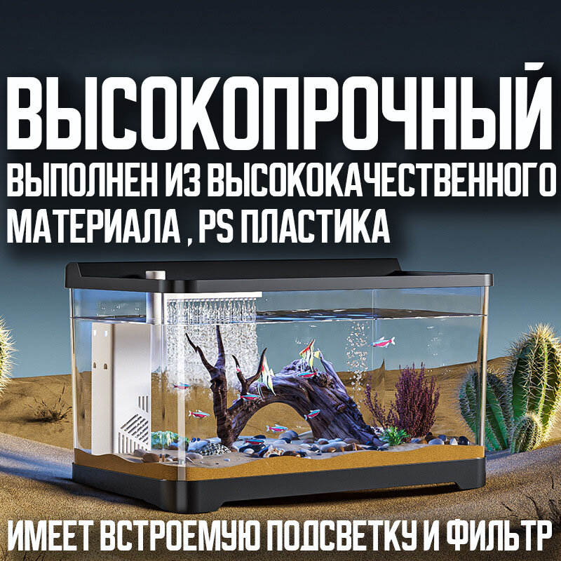 Аквариум с встроенной подсветкой и фильтром для рыб,38.8х21.5х22.5см интересное: