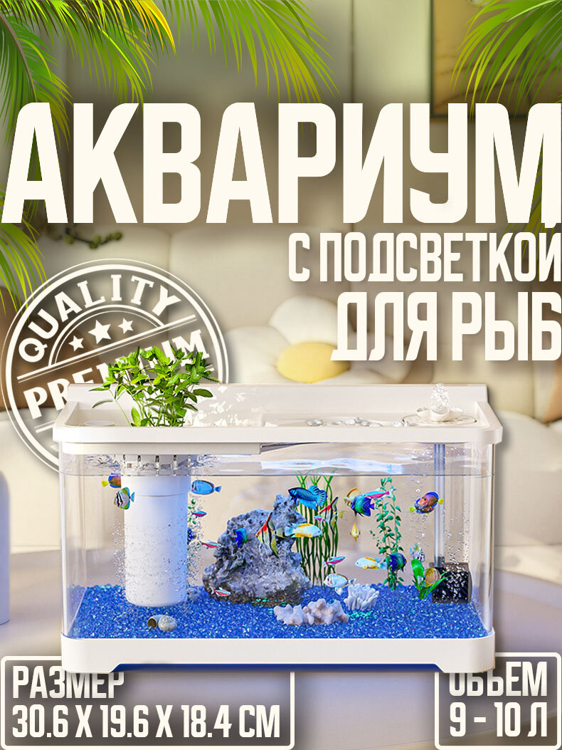Аквариум для рыб с крышкой и подсветкой, белый,30.6x19.6x18.4CM интересное: