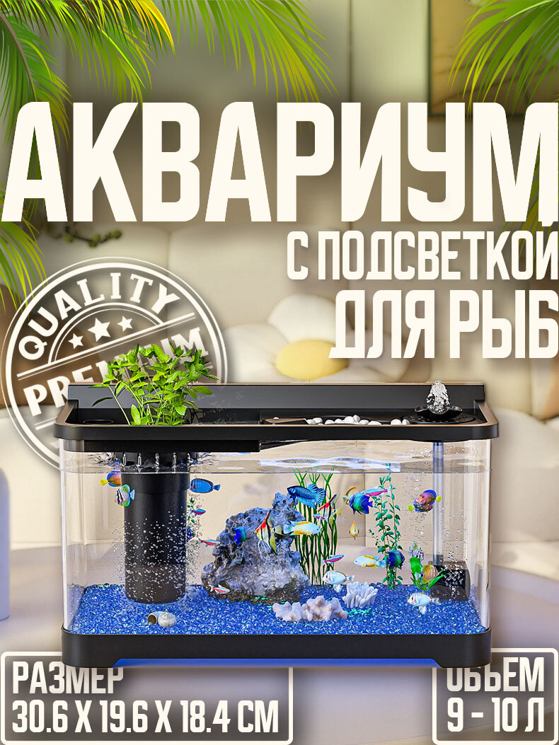 Аквариум для рыб с крышкой и подсветкой, черный,30.6x19.6x18.4CM интересное: