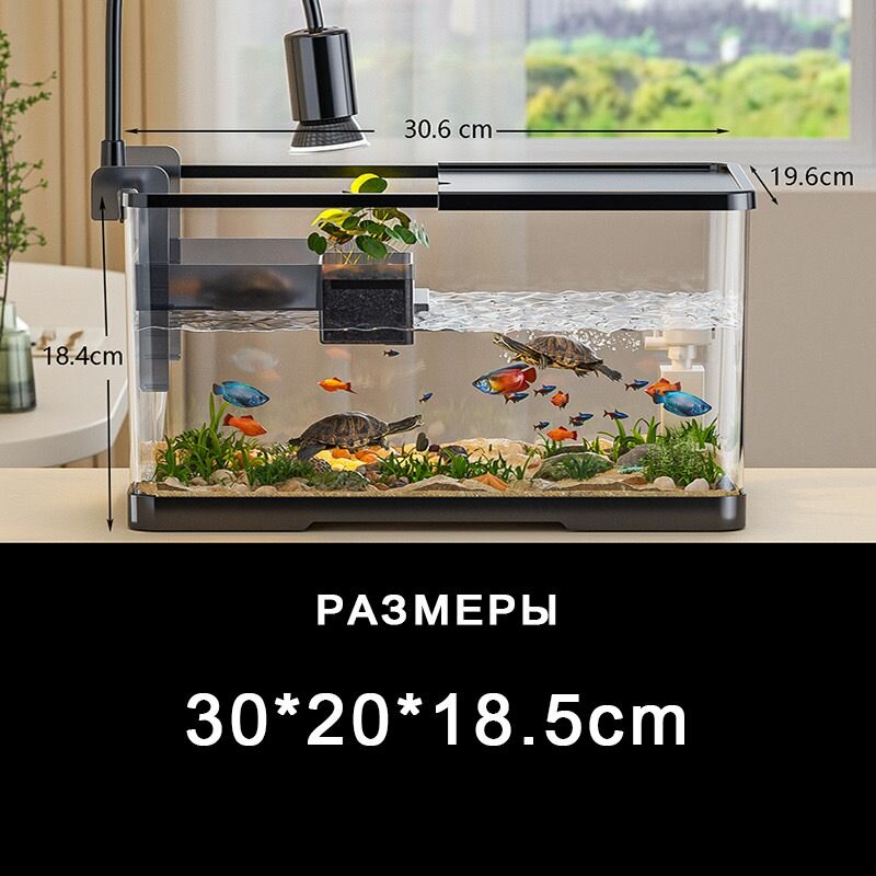 Аквариум для черепахи красноухой, 30*20*19cm, С аквариумным светильником и фильтром интересное: