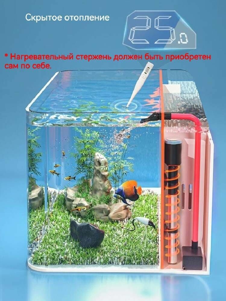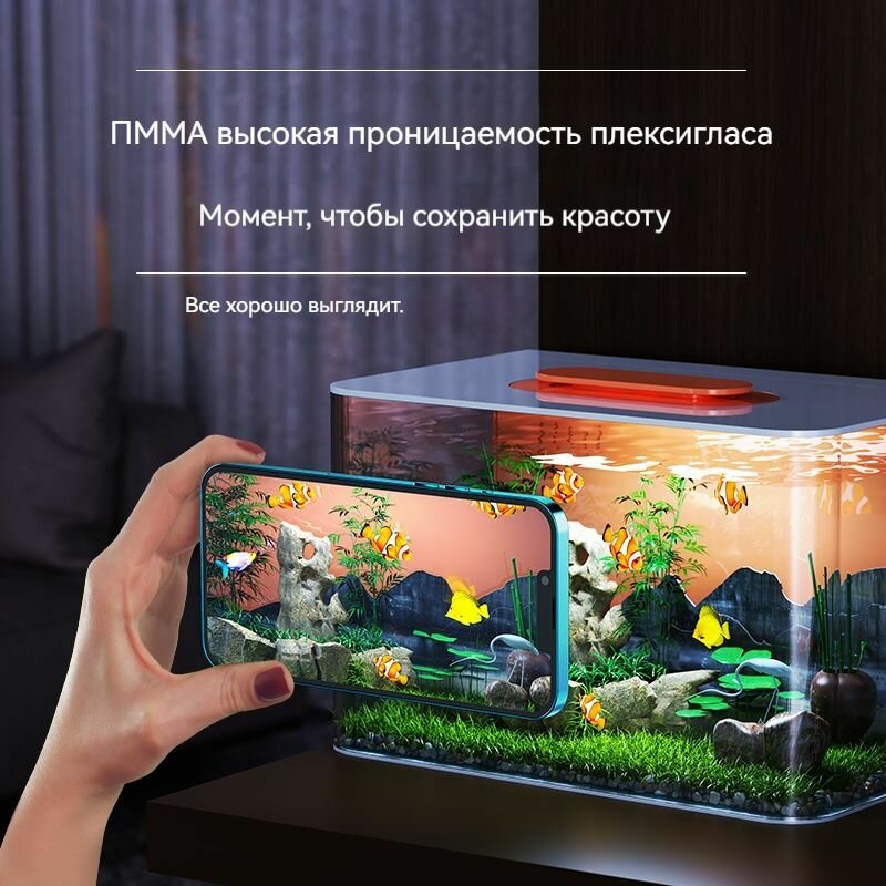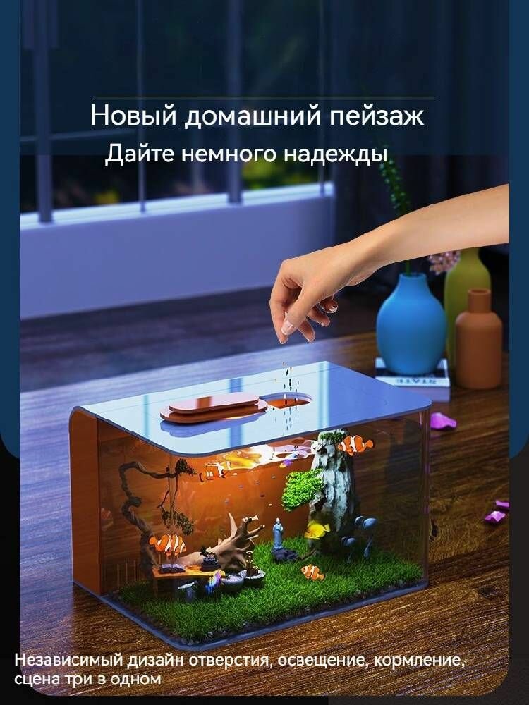 Аквариум на 10 литров с акриловой кислотой и светодиодной подсветкой (несколько цветов подсветки) + фильтр и аэрация Бесплатная доставка