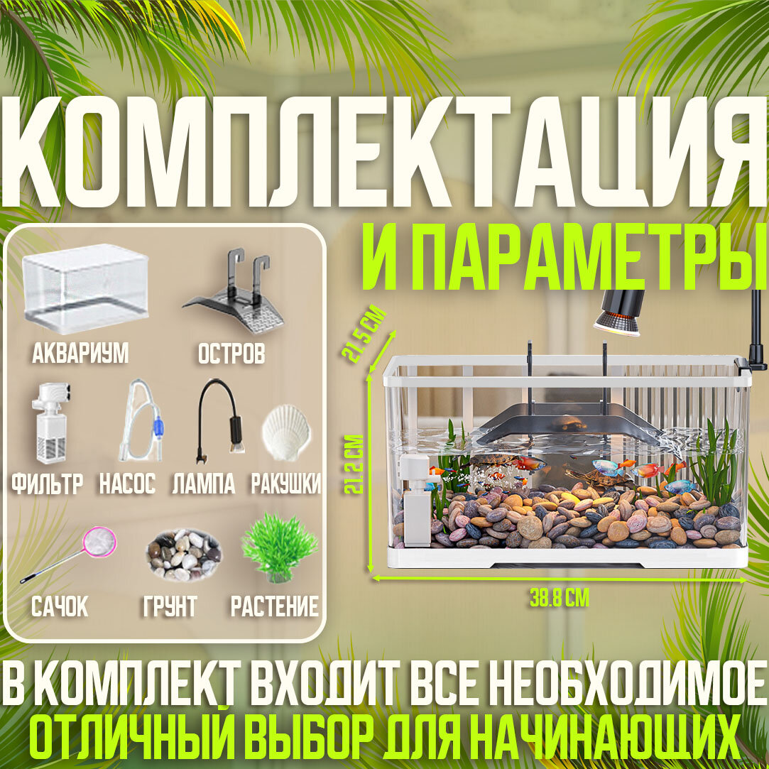 СохранитьАквариум для рыб и черепах с встраиваемой лампой, фильтром и островом, белый,38.8x21.5x21.2CM интересное: