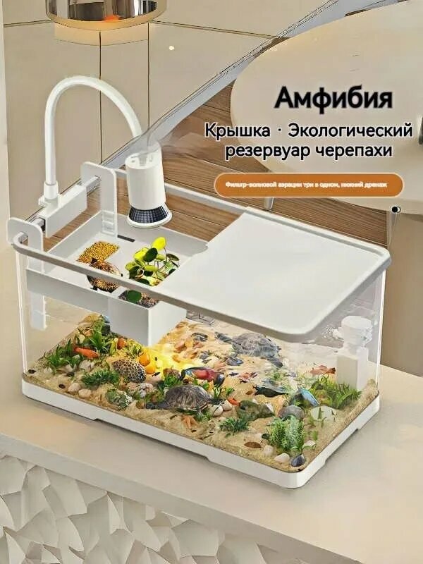 Аквариум для черепахи красноухой,49.5*21.4*21cm , С аквариумным светильником и фильтром интересное:
