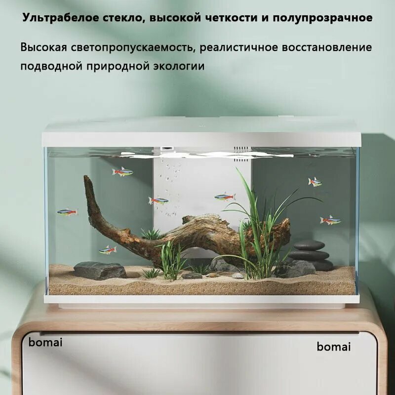 Умный аквариум для рыб, ультрабелое стекло, трехцветная светодиодная подсветка, с фильтром интересное:
