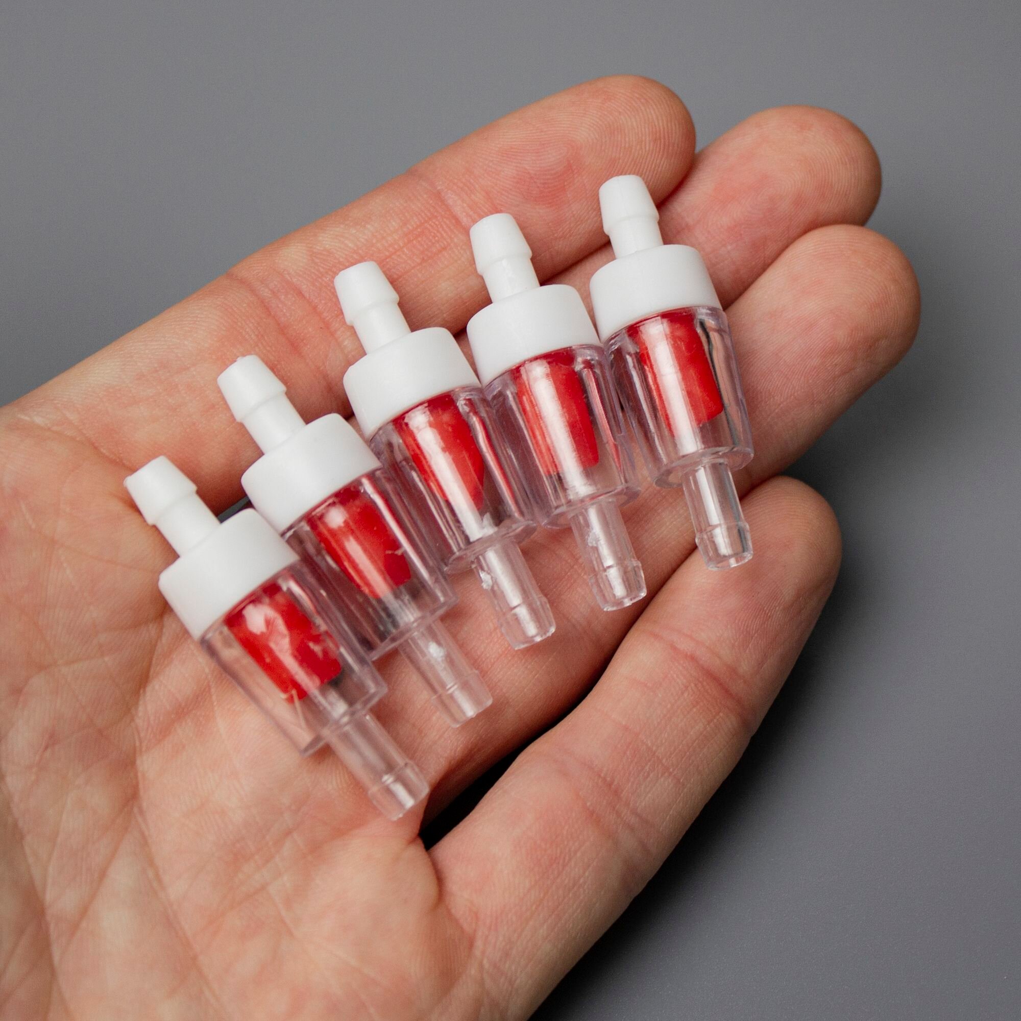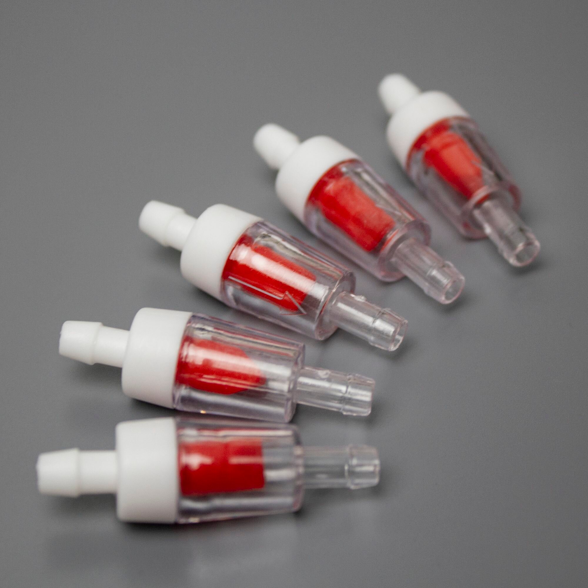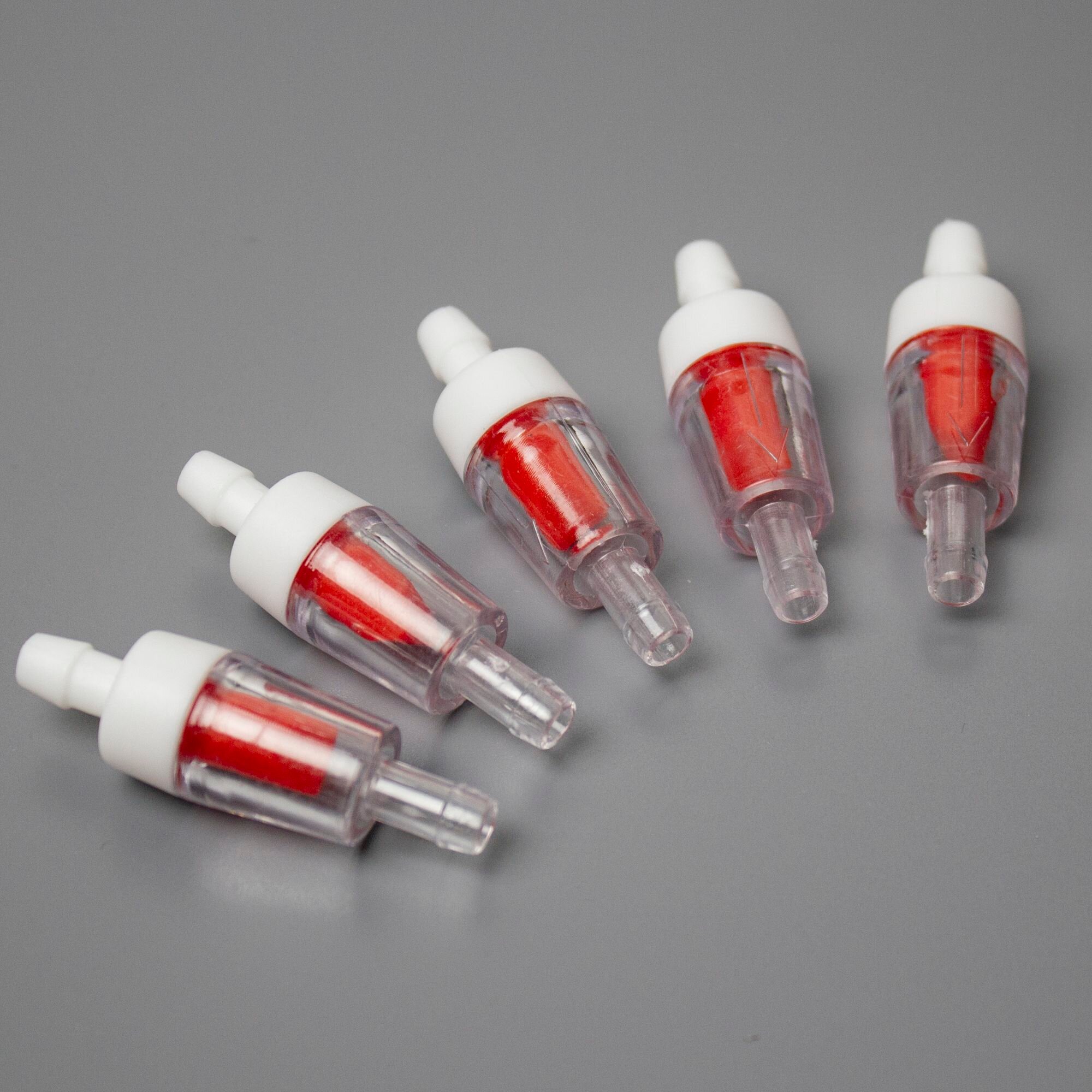 Купить Обратные клапаны 5 штук, штуцер 4 мм. Для аквариума и компрессора, шланг диаметром 4/6 мм. (прозрачный с красным)