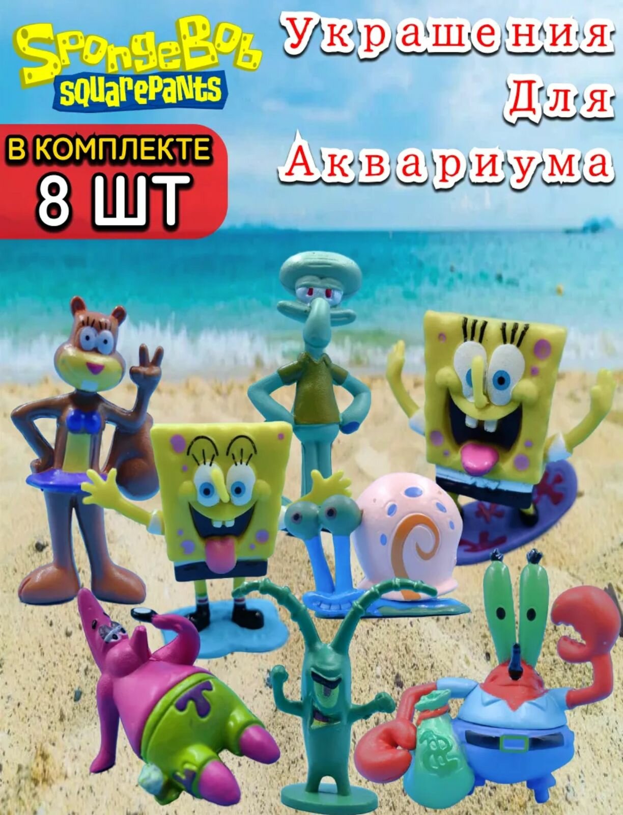 Фигурки спанч боб 8шт, Губка Боб декор для аквариума интересное: