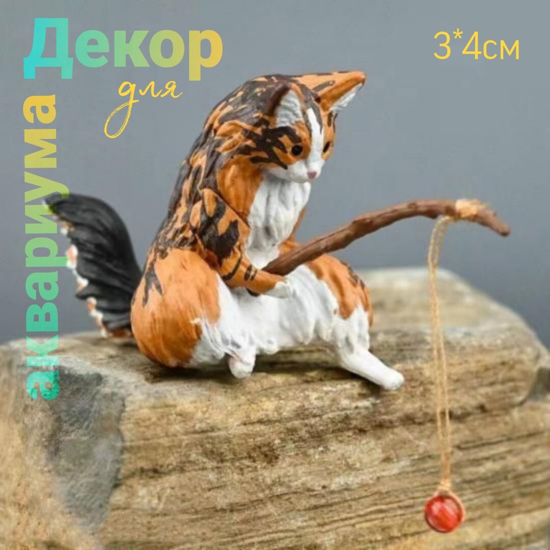 Декор для аквариума Котик - рыбак, пушистый интересное: