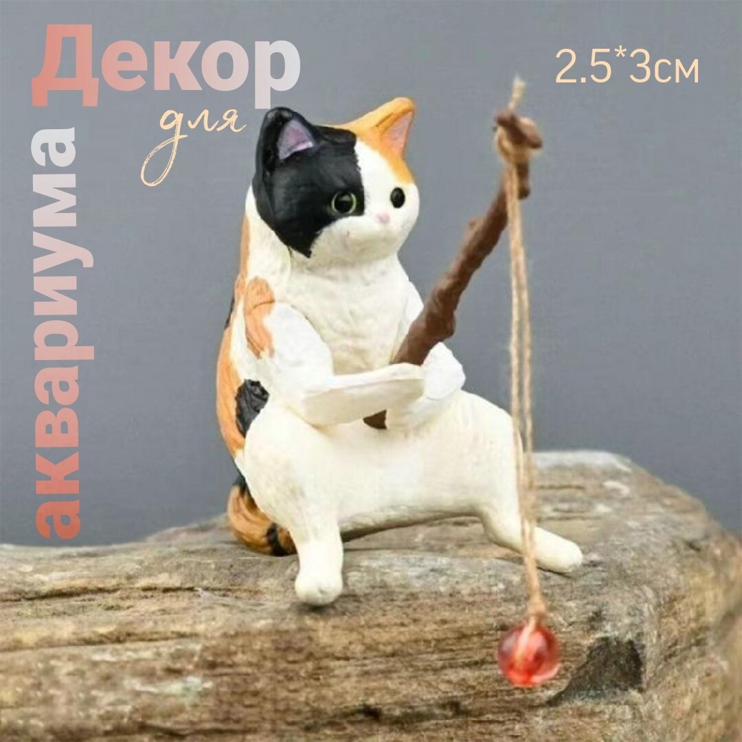 Купить Декор для аквариума Котик - рыбак, трехцветный
