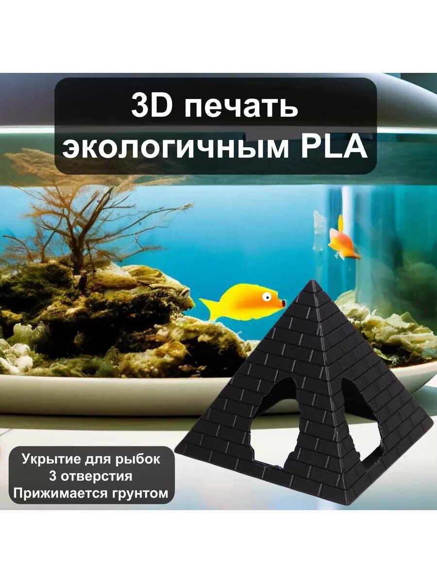 Грот "Пирамида" для рыбок и креветок в аквариум от бренда "Рыбкин Дом", цвет: черный интересное: