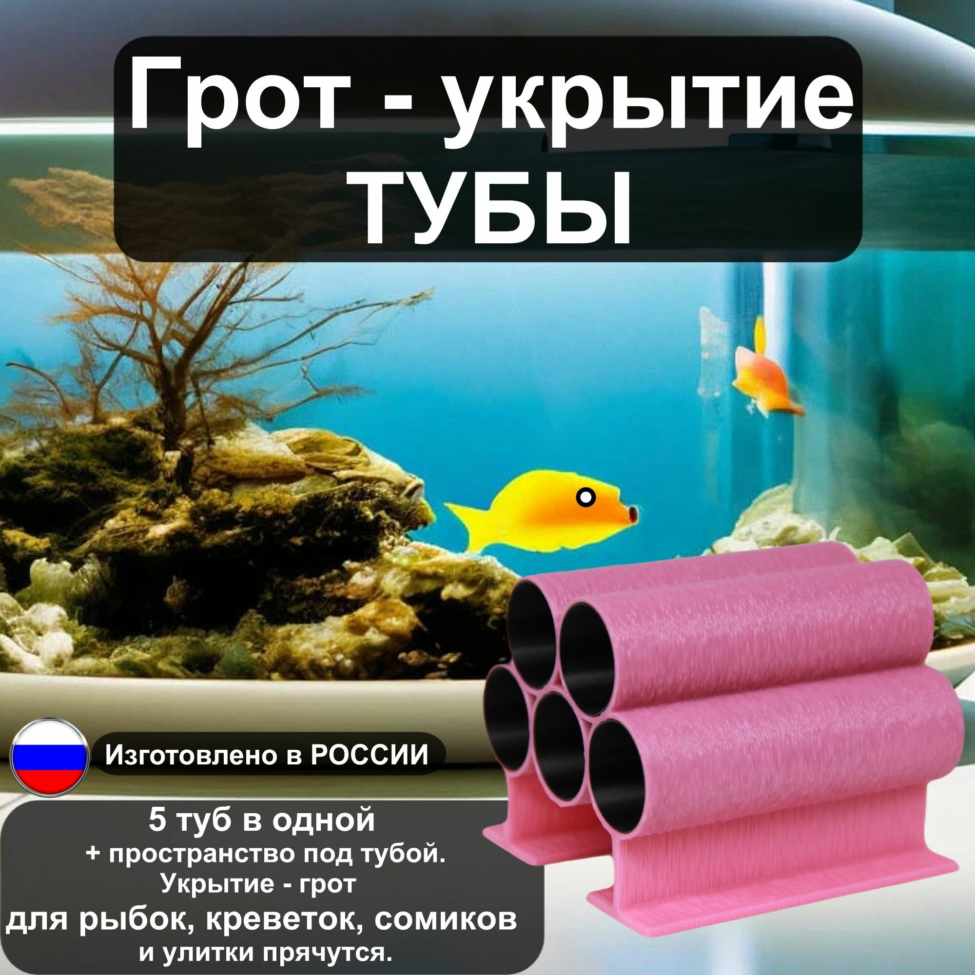 Грот для рыбок и креветок в аквариум, розовый интересное: