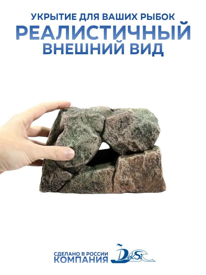 Декорация для аквариума камень Гранит, грот DEKSI 1195 маскирующий элемент для фильтра и обогревателя