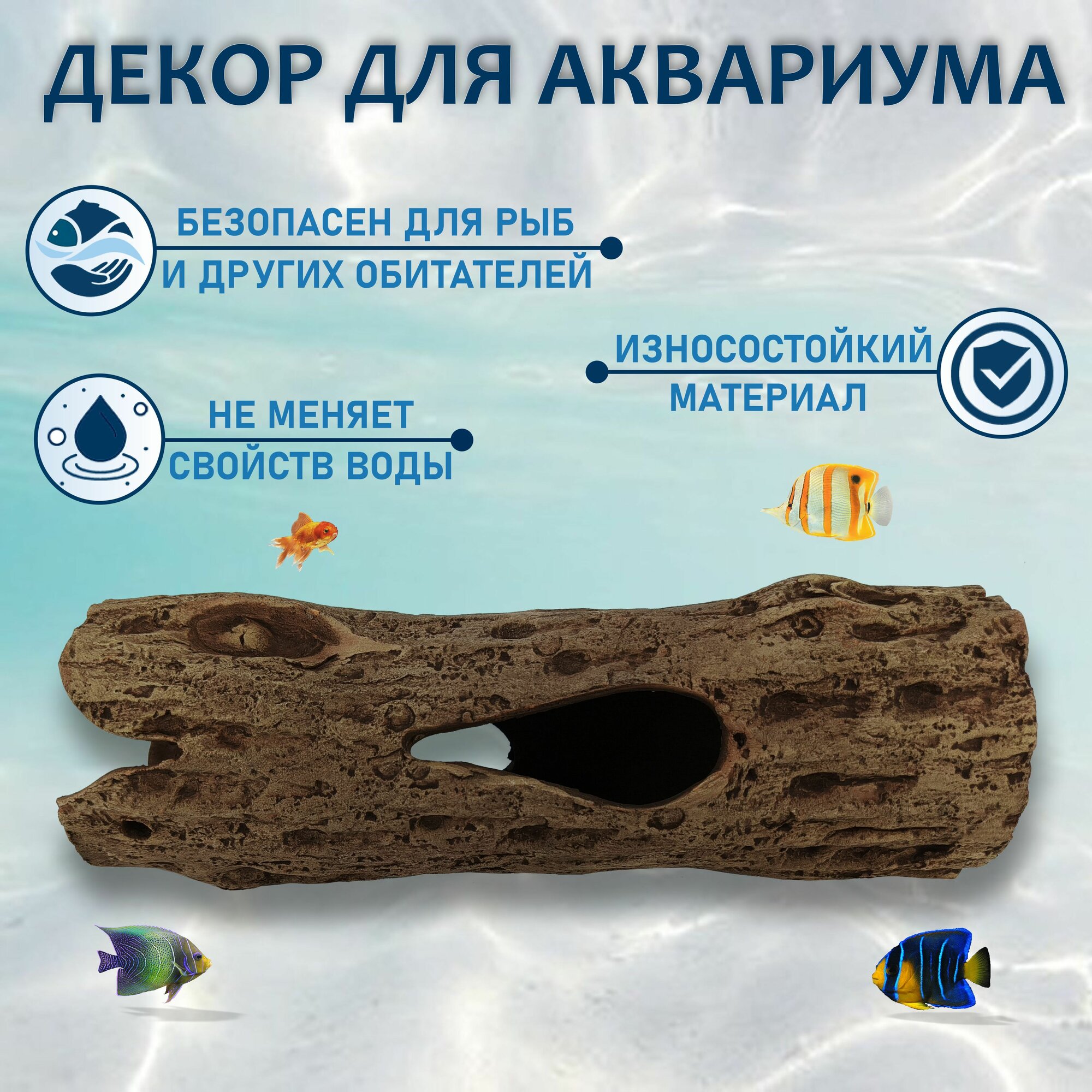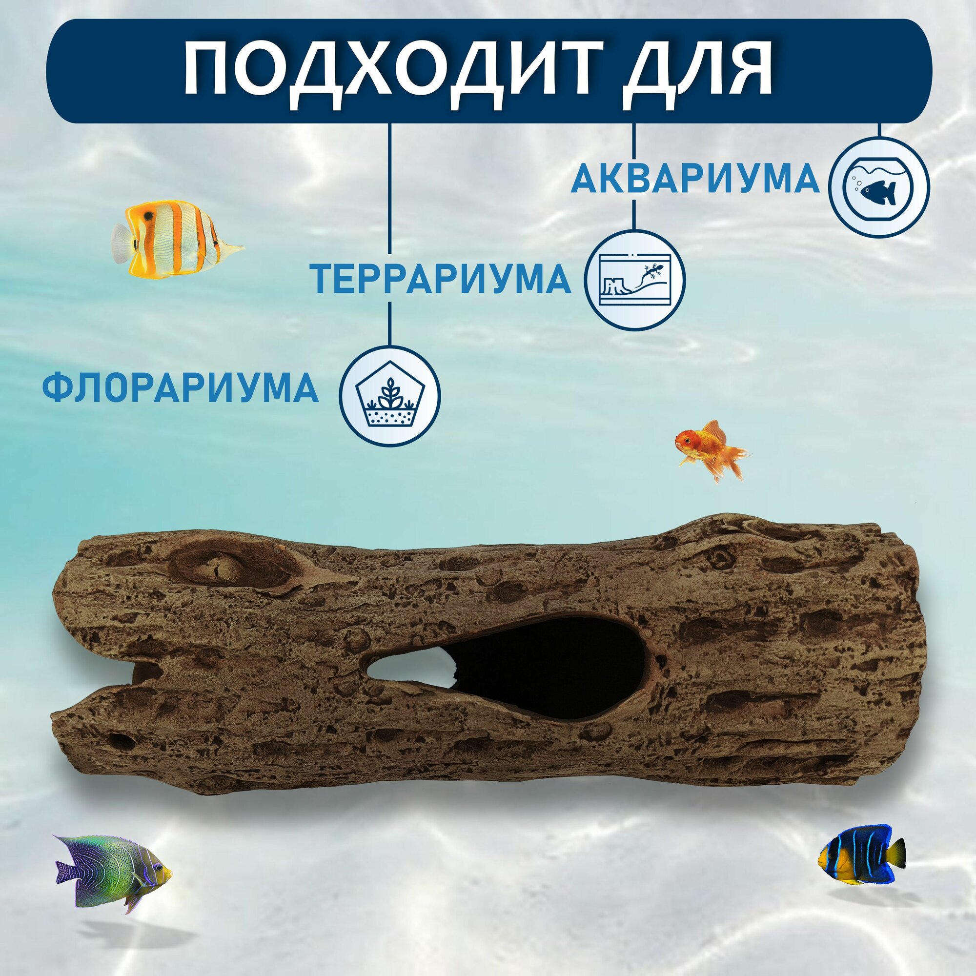Грот для аквариума искусственная коряга большое бревно №14 интересное: