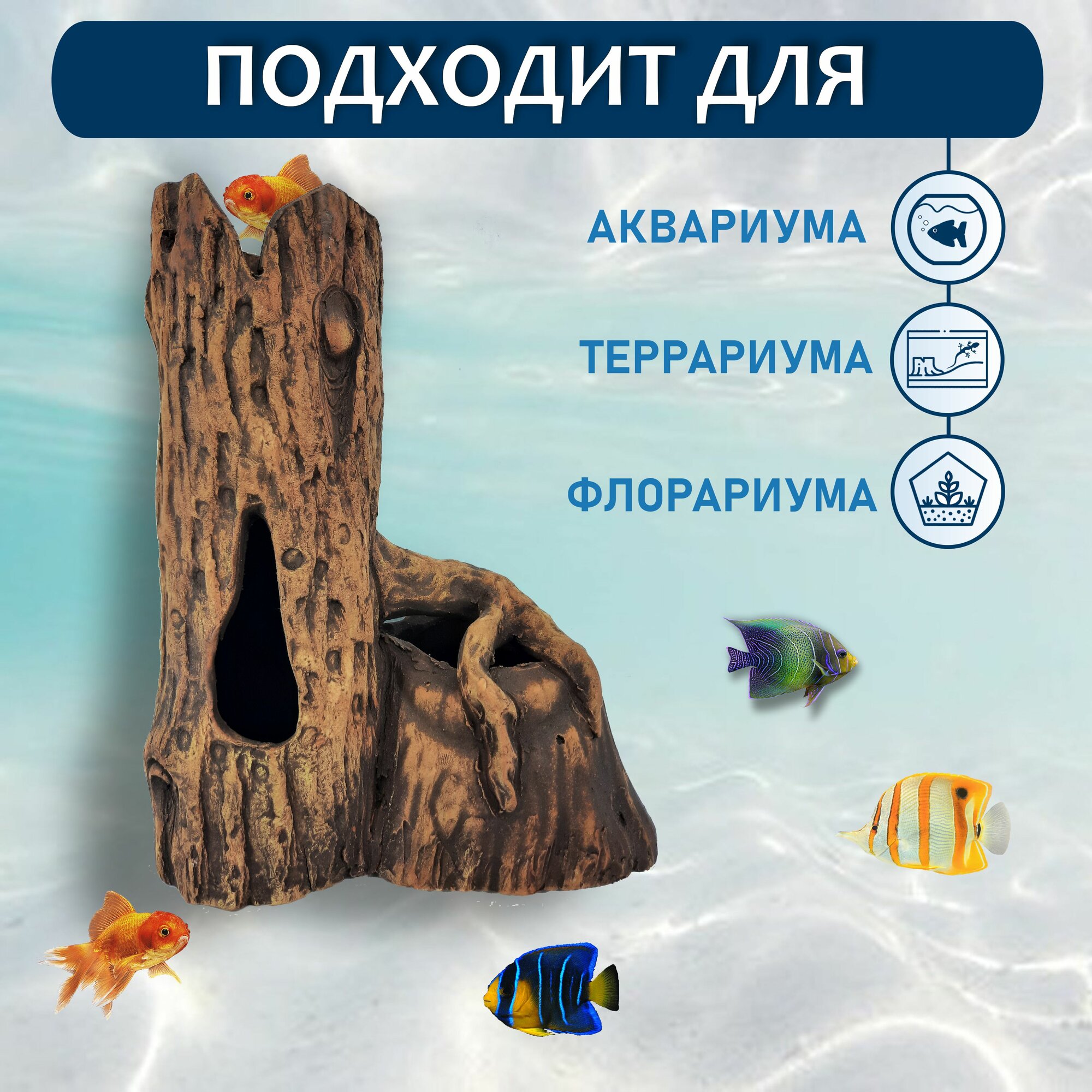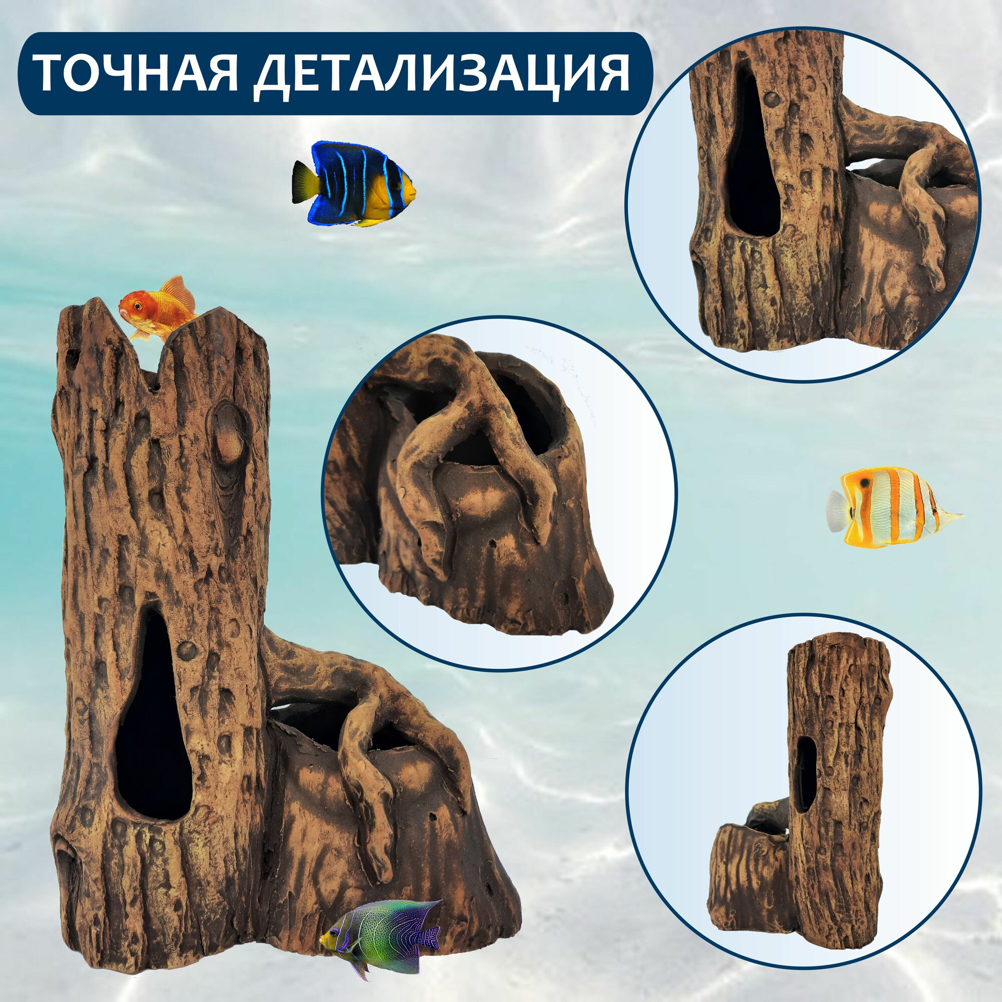 Грот для аквариума искусственная коряга №3 интересное:
