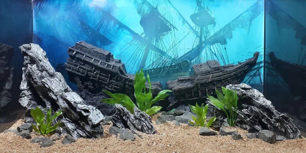 Декорация для аквариума Корабль, грот DEKSI 531 односторонний объемный элемент