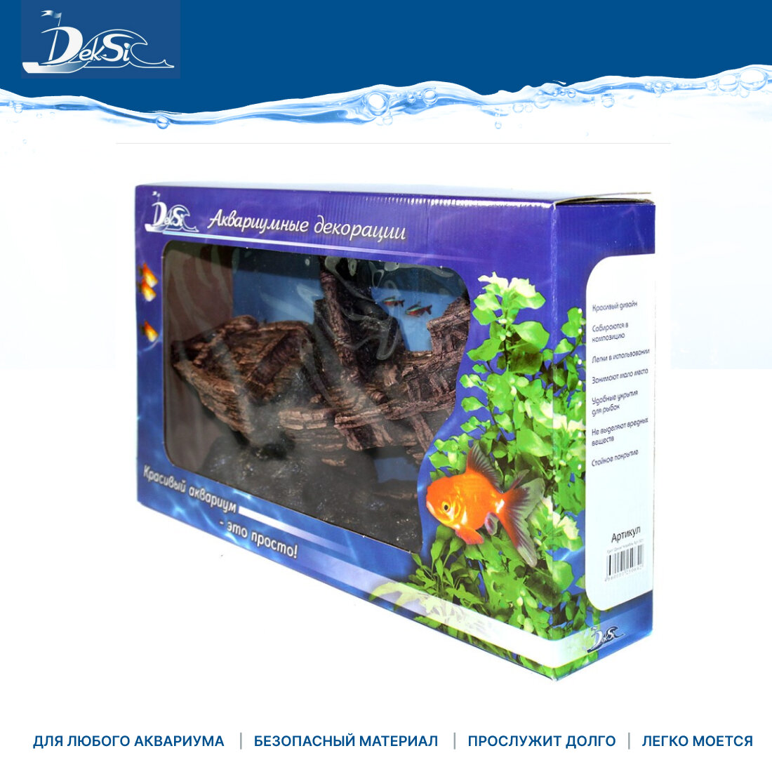 Декорация для аквариума Корабль, грот DEKSI 531 односторонний объемный элемент