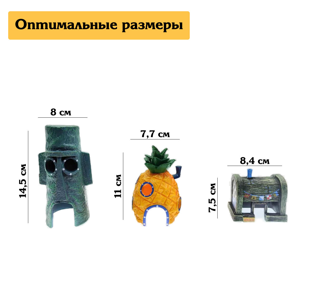 Набор декораций для аквариума "Губка боб" / 3 шт / KRImarket интересное:
