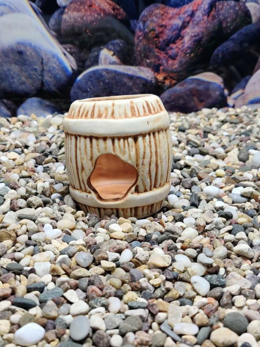 Декорация для террариума и аквариума из глины "Бочка" интересное: