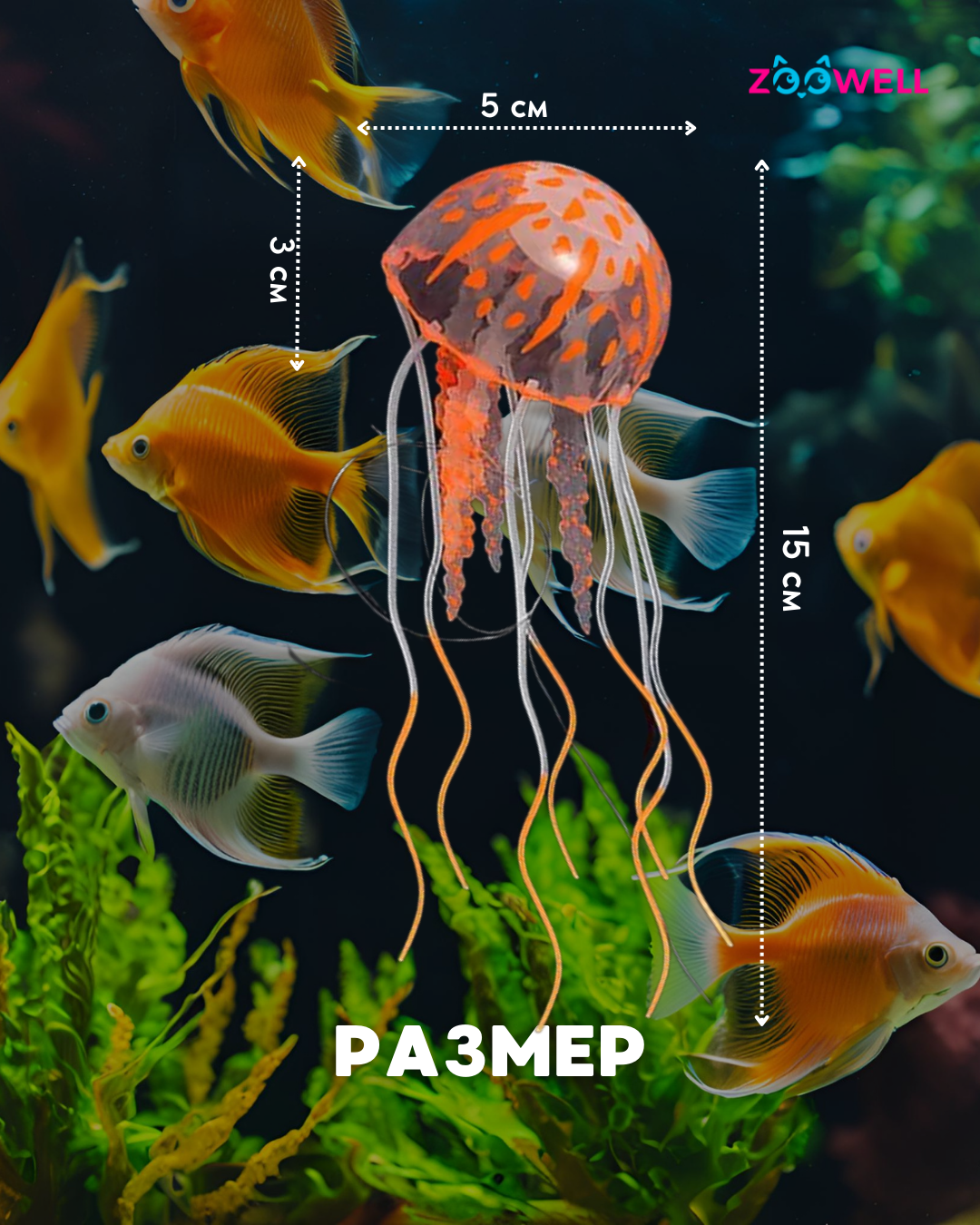 СохранитьДекор для аквариума флуоресцентный ZooWell Neon Light (Медуза светящаяся), цвет оранжевый интересное: